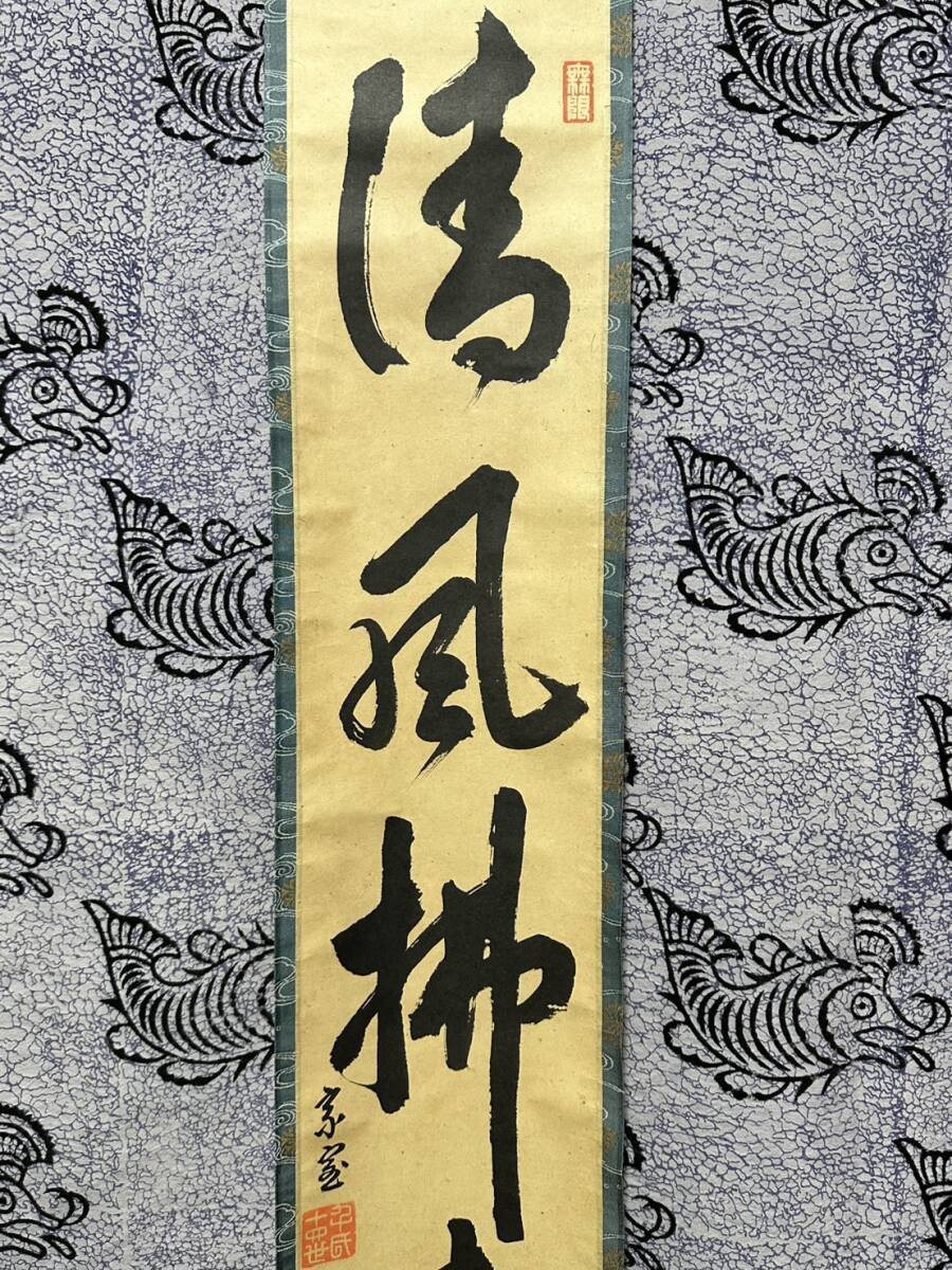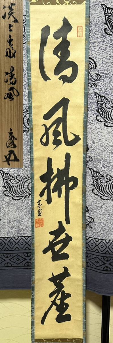 『真作』掛け軸【KJ26 茶道具 十四世 淡々斎 清風佛世塵 十五世家元書付 茶掛 紙本 肉筆 茶道具 書 画 江戸 明治 大正 昭和 時代物 美術 】