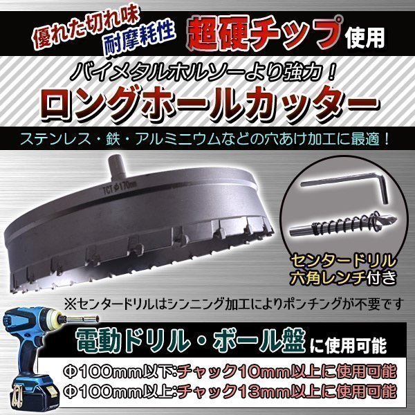 優れた切れ味と耐摩耗性を持った超硬チップを使用! バイメタルホルソー より強力なロングホールカッターです。