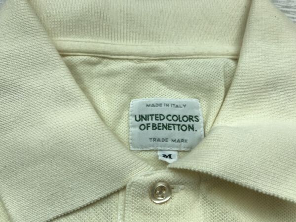 Italy製 UNITED COLORS OF BENETTON ユナイテッドカラーズオブベネトン 鹿の子 長袖 ポロシャツ メンズ 綿100% M 黄色 です。