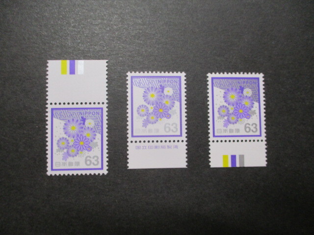 弔事切手  きく・63円  カラーマーク上・下・銘版単片各1枚   美品