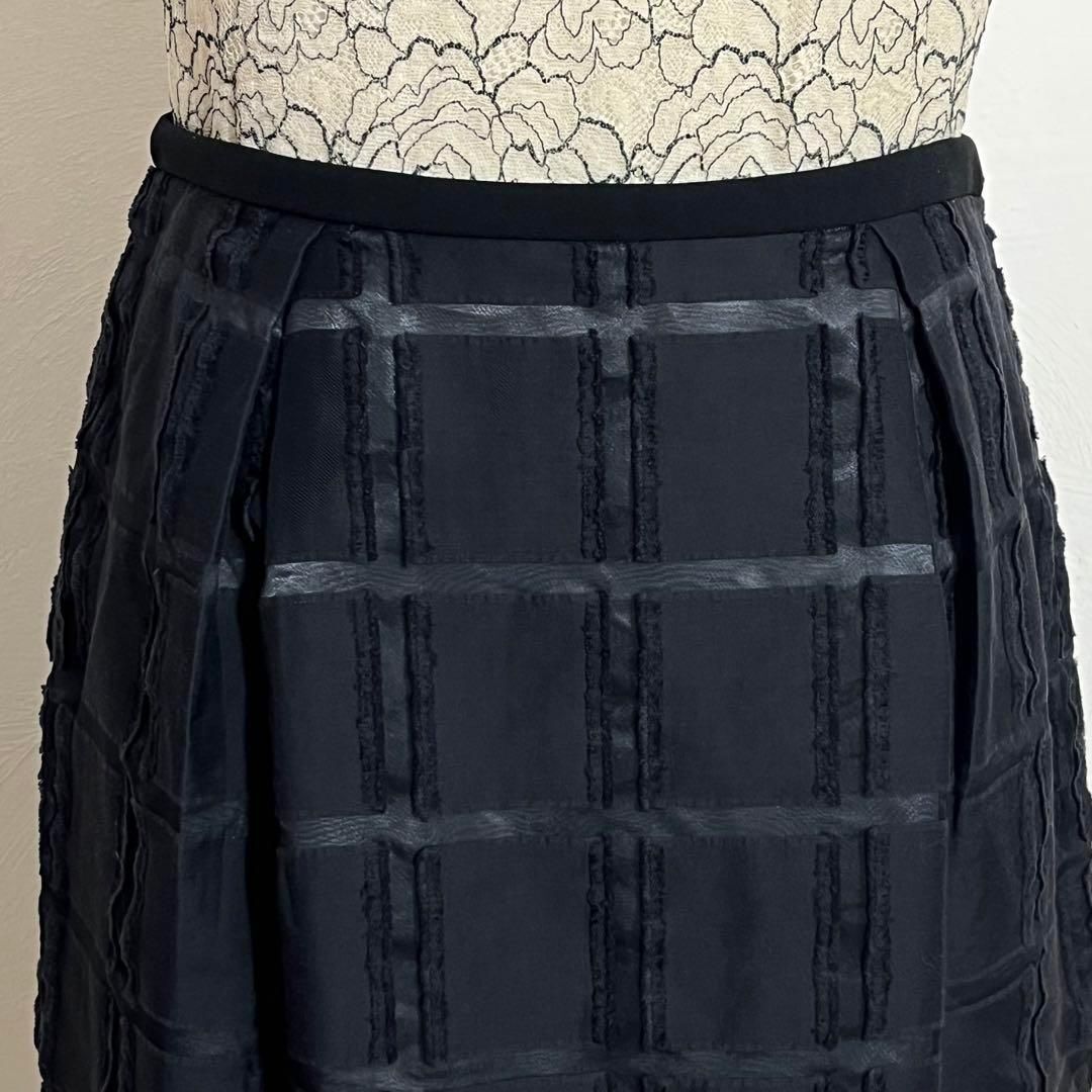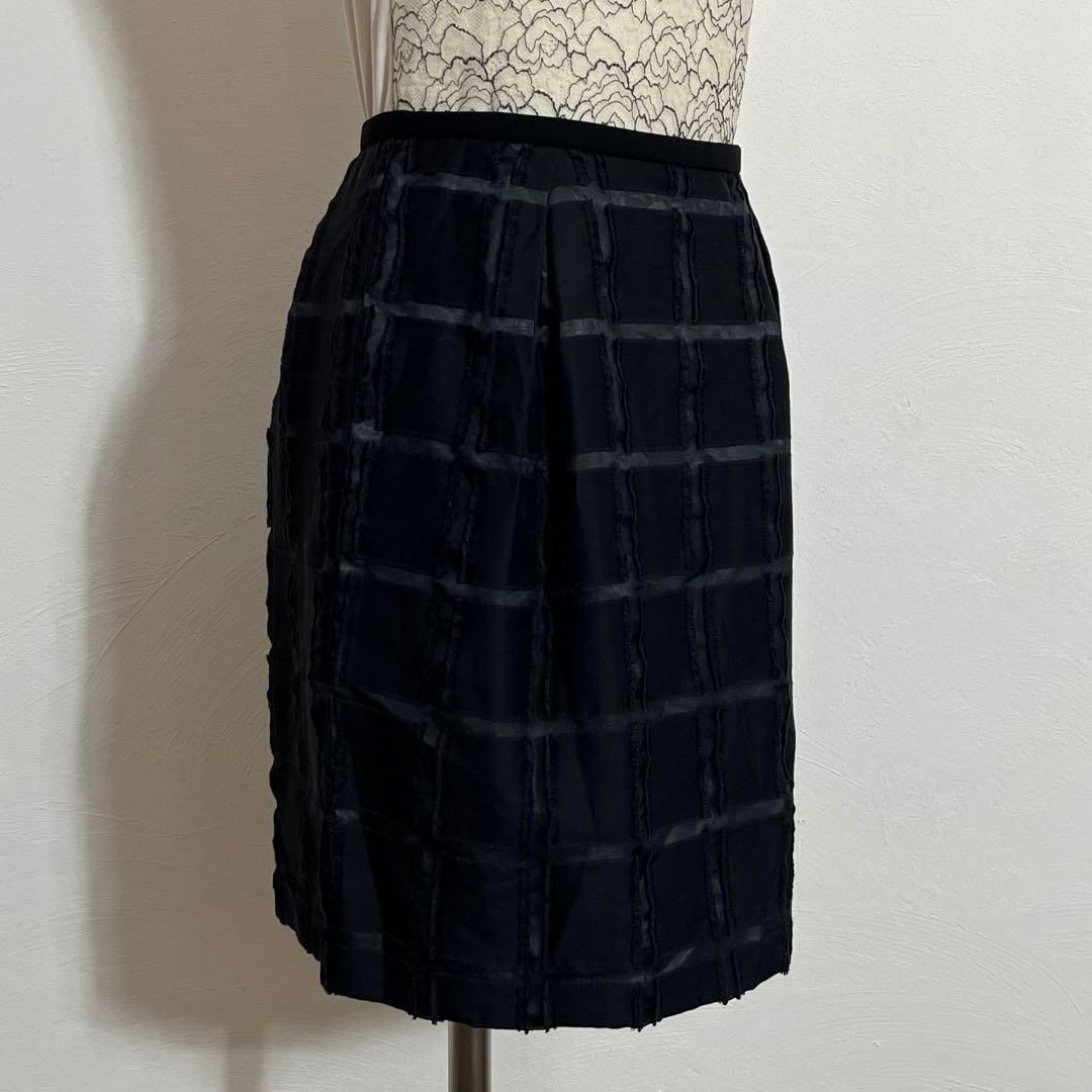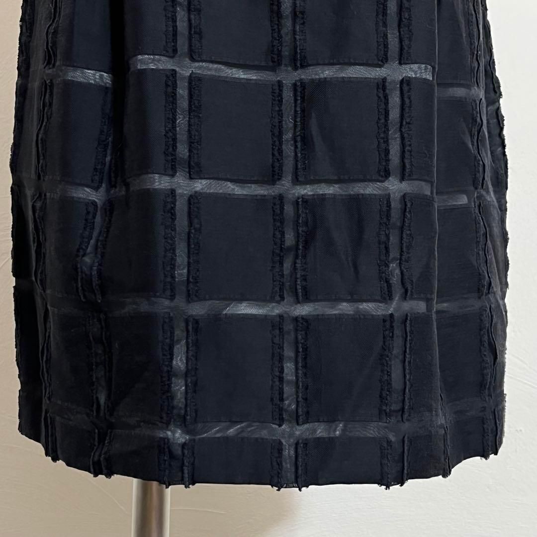 絹混 透け素材 グラフチェック パッチワーク風 ひざ丈タックスカート レディース