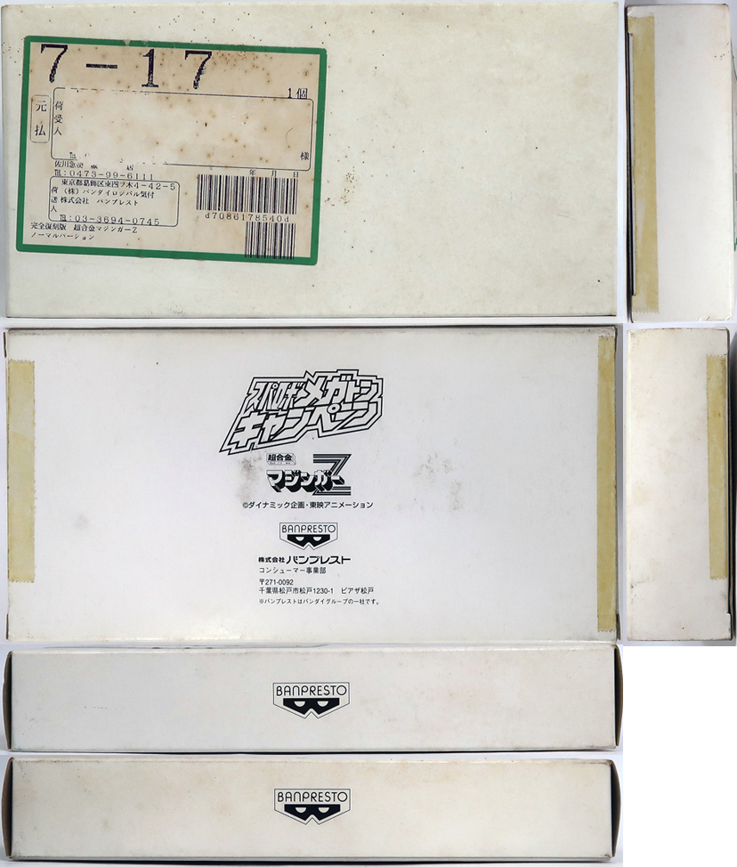 出品は画像の物が全てです。発送時の外箱は擦れや汚れがあります。宛名は個人情報が載っているので消してあります。箱を開けての状態は画像でご確認ください。フィギュアは多少なりとも擦れや汚れはあるかもしれませんが状態は悪くないです。フィギュアの元箱も外箱に入っていたので状態はいいです。あとは画像をよくご覧になって確認してください。お取引後はいかなる理由がありましても返品は出来ませんしクレームもお受け出来ません。