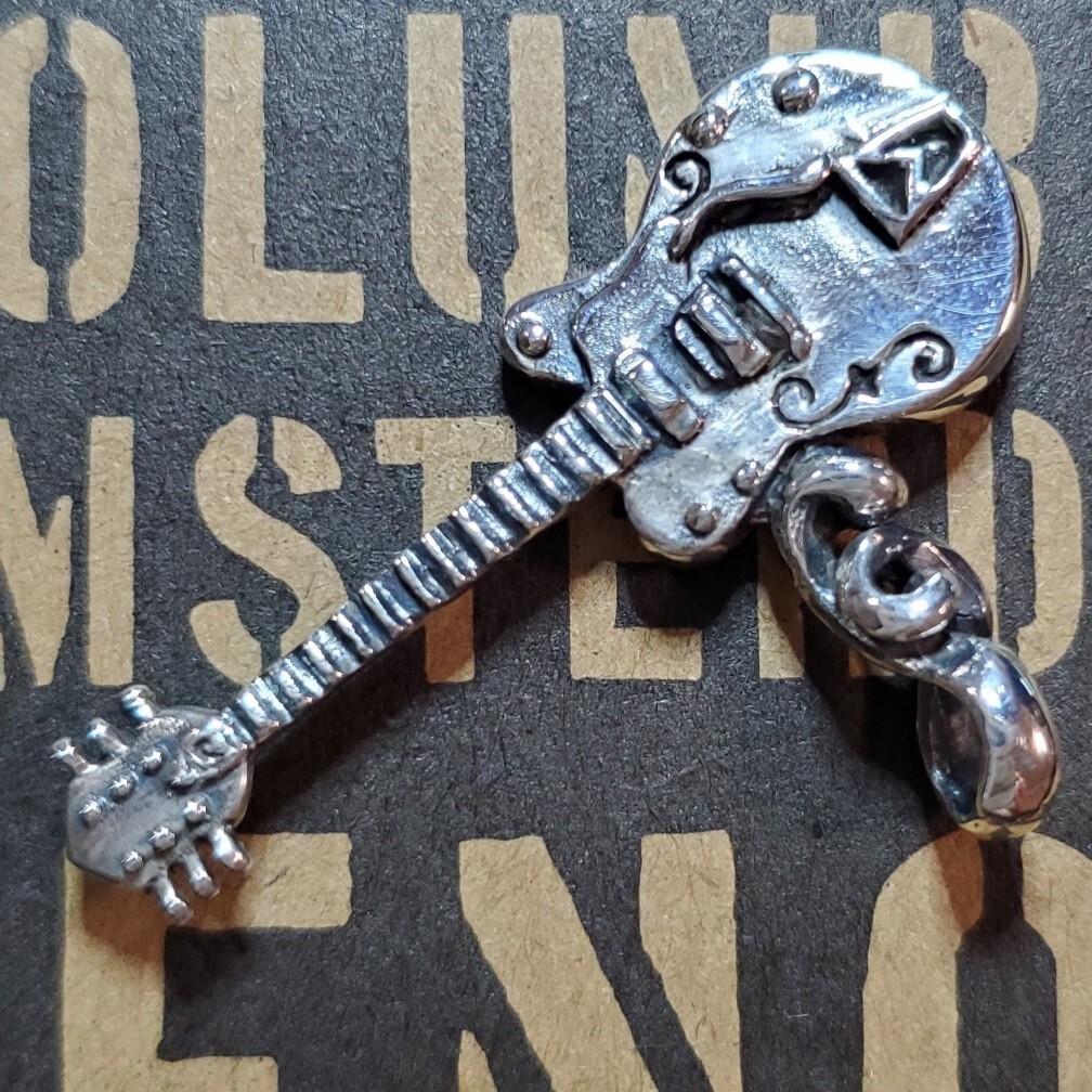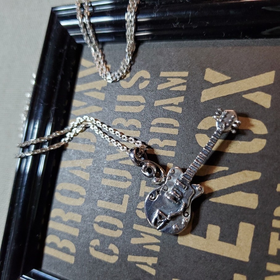 チャーム シルバー925 ペンダント ネックレス ギター エレキギター 音楽 silver925 銀 本物 重量感 メンズ チャーム かっこい n0376