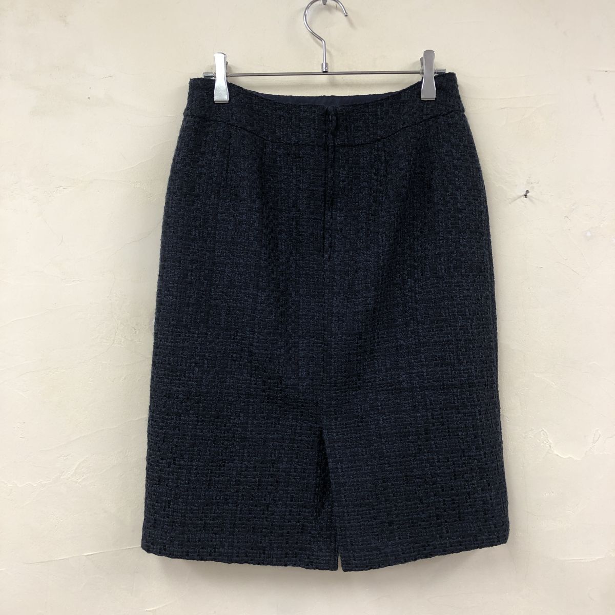 2O3196-G-N◆美品◆ juriae ジュリア メタルヤーンツイードミドルスカート 膝丈 バックスリット ファスナー ◆ size64-91 綿 アクリル