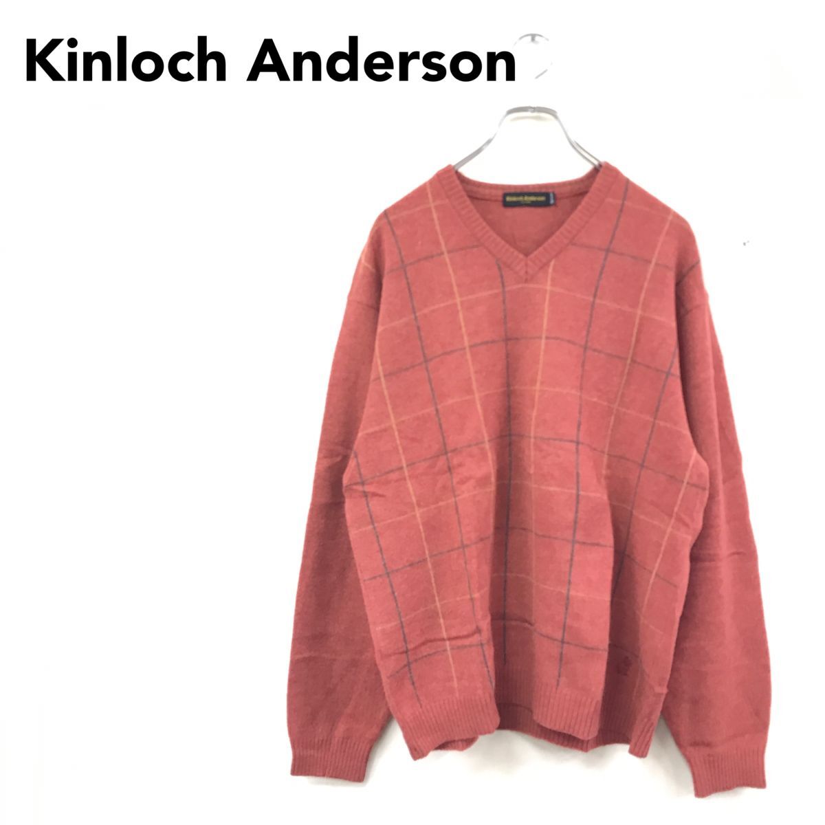 2O3039-R◆Kinloch Anderson キンロックアンダー Vネックニットセーター◆サイズM メンズ 紳士 トップス 秋冬 チェック 赤系 レッド