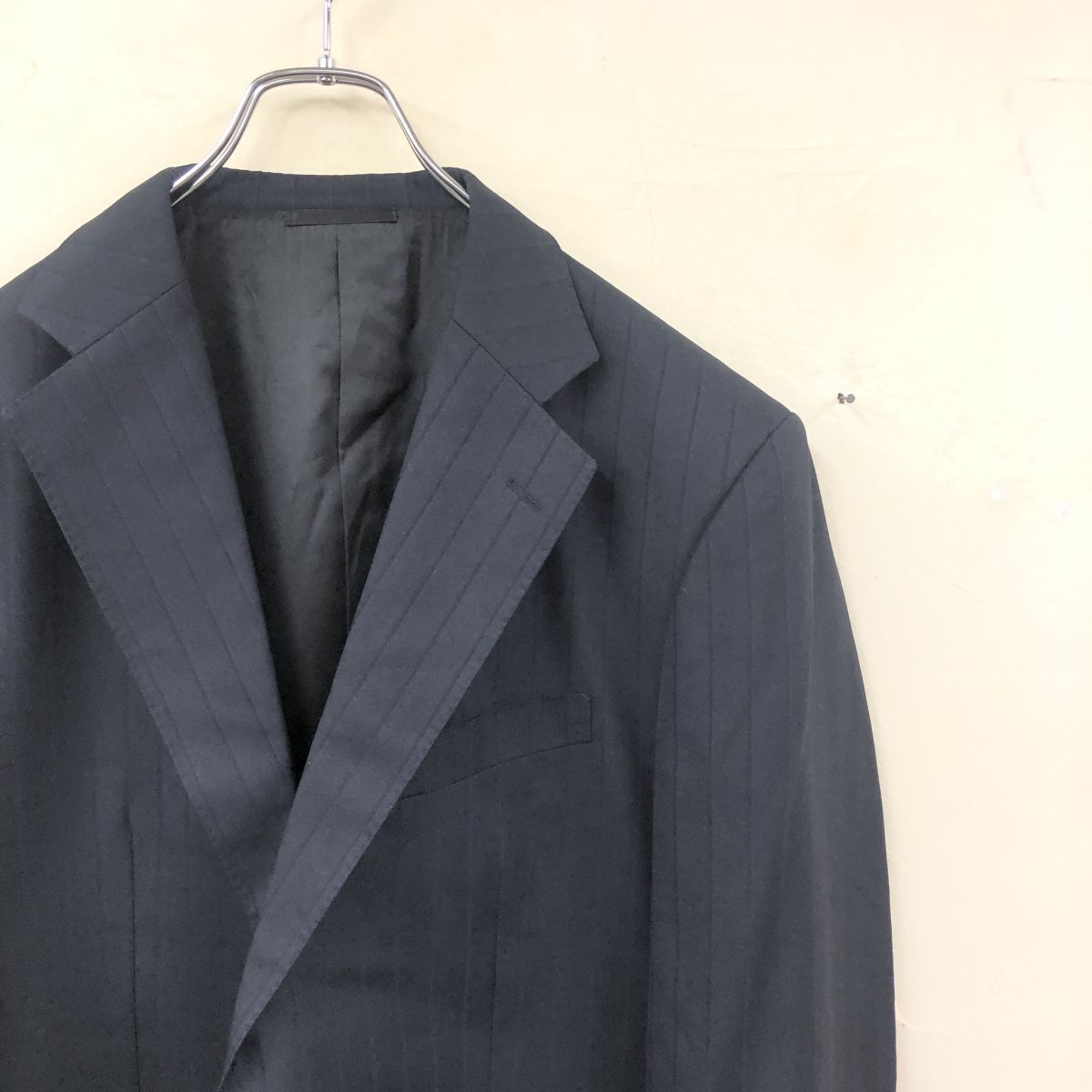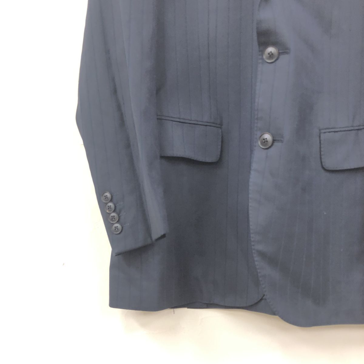 2O3304-O-S◆BURBERRY LONDON バーバリーロンドン スーツセットアップ 総裏 ストライプ シングル スラックス◆ネイビー 毛