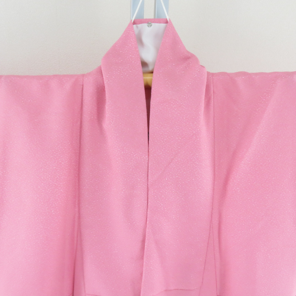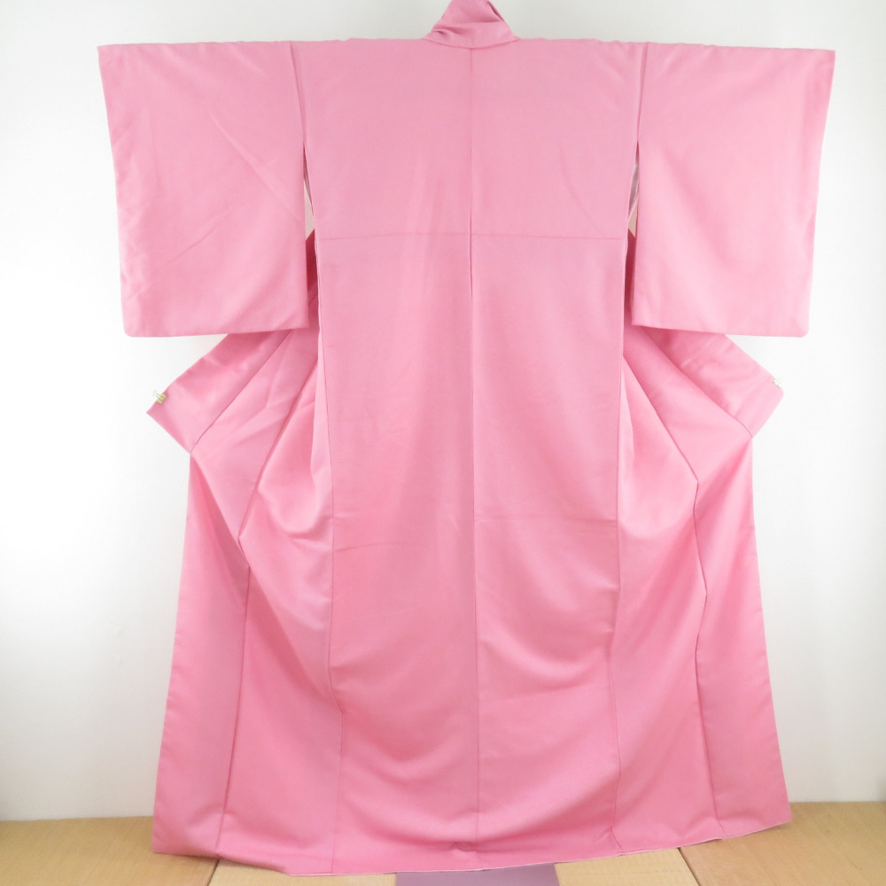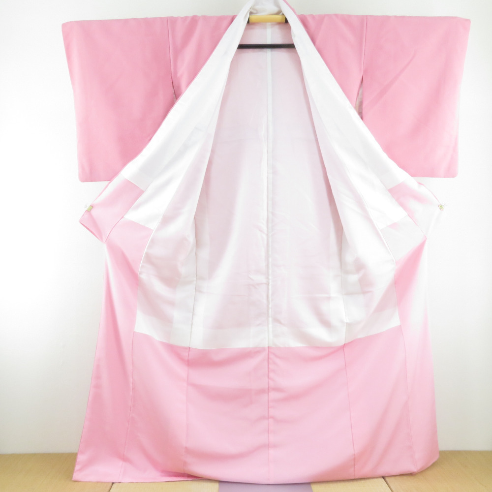 | 色無地 袷 広衿 桃色 洗える ポリエステル 紋なし カジュアル 仕立て上がり着物 身丈166cm |
