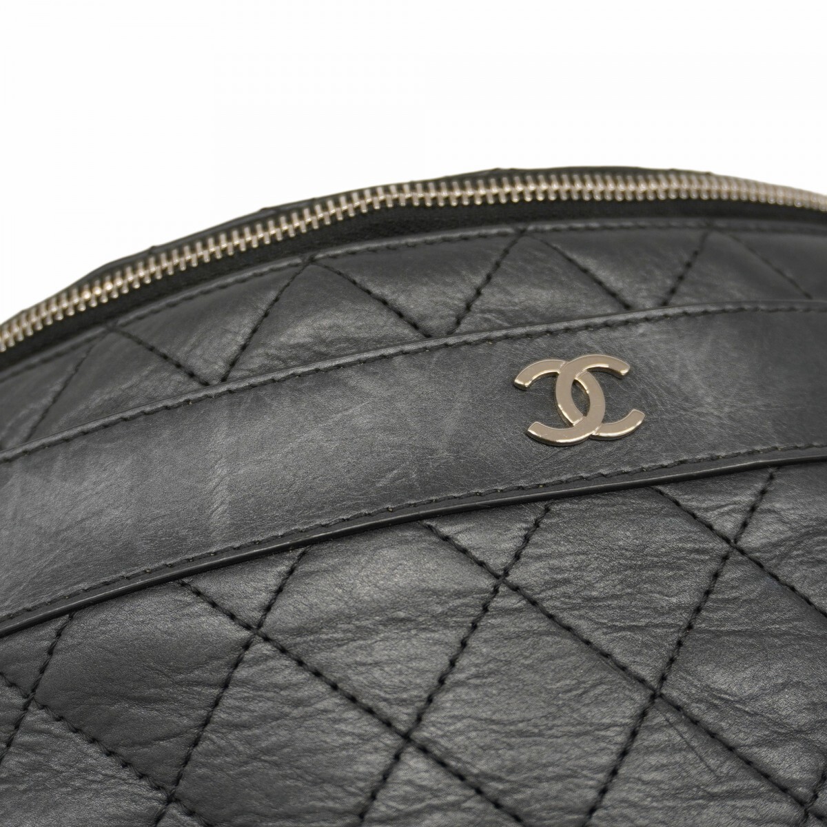 【5me6387-h】シャネル ウエストバッグ マトラッセ レザー ブラック シルバー金具【中古】レディース