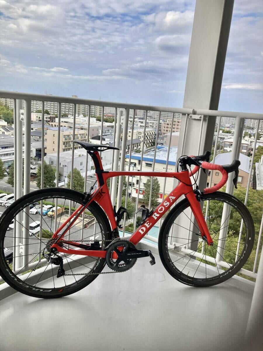 モデルチェンジを気にせず長く愛用でき輪行も容易なメンテナンスし易いワイヤーコンポ(電動も対応フレーム)で組みました。非ディスクながらカッチリしたダイレクトマンウトブレーキ。エアロフレームで脚元から進む巡行性を体感できます。平坦なサイクリングロードはもちろん、ツアーオブジャパン相模原ステージ程度の上り、下りなら初級者でも快適に走れます。この度、クロモリでの長旅に専念するため売却するものです。フレーム:DE ROSA SK Pininfarina(2018年モデル、2019年組立)コンボ:DURA ACE R9100(リコール確認済)ホイール:FULCRUM RACING QUATTRO CARBONハンドル・ステム:SHIMANO PRO VIBEのフルカーボンです。サドル:selle italia SLR(2024年購入で使用10回程度)