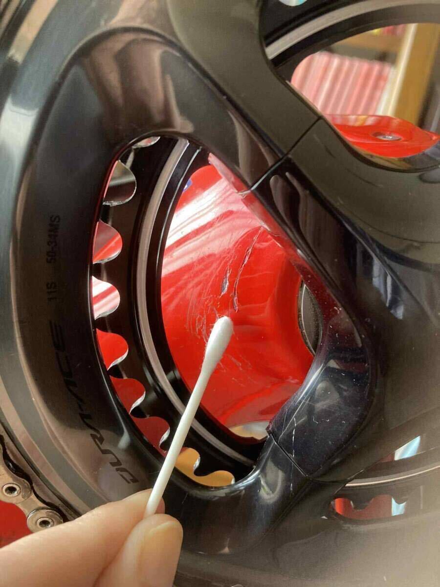 使用状況 :6シーズン約3000km使用。立ちゴケ含む落車無し。写真のとおりチェーン落ちした時の傷及び石ハネ?の小傷がございますが、いずれも目ただない位置です。基本雨天予報時は使用せず、にわか雨での走行1回のみ。プロショップで洗車、バリアスコート済。