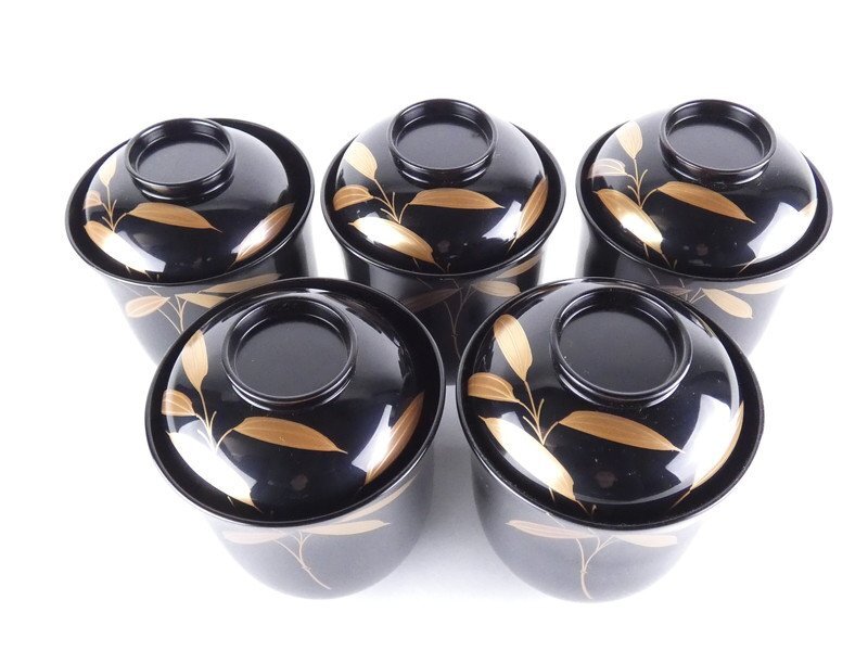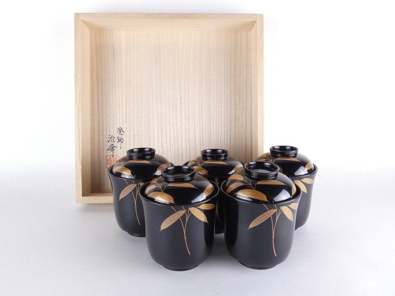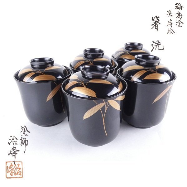 【都屋】池端治峰「輪島塗 笹蒔絵 箸洗」5客 共箱 蒔絵椀