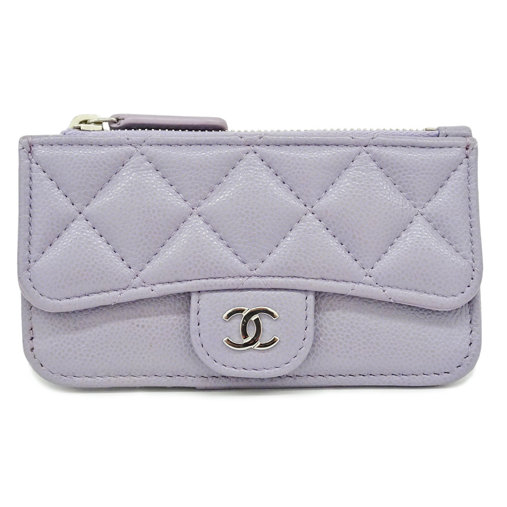 【栄】シャネル コインケース クラシック ココマーク AP2570 レザー 財布 パープル シルバー金具 箱
