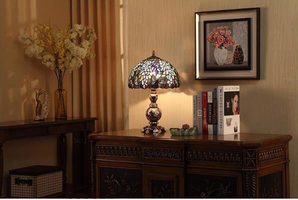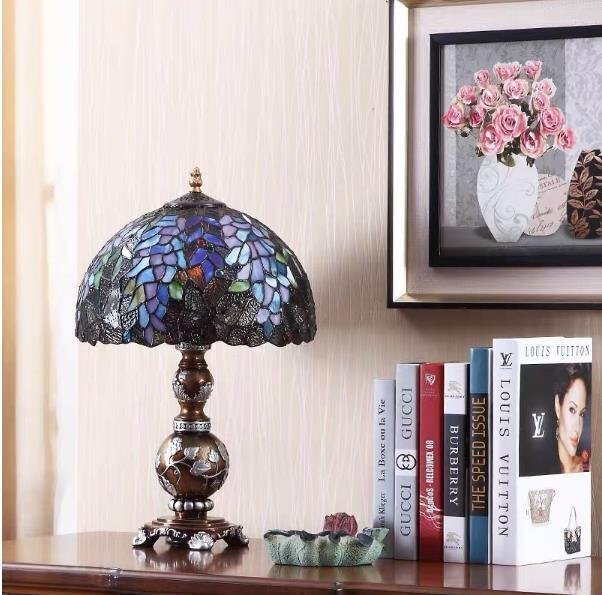 古風★美品 ヴィンテージ ステンドランプ ステンドグラス アンティーク 花柄 レトロな雰囲気が 照明 ティファニー技法