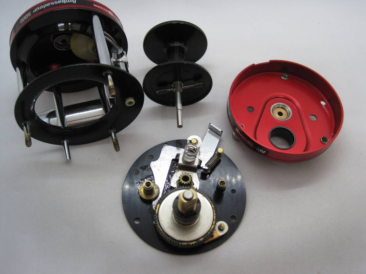 - 1985年の3月に製造された、ABU アンバサダー 5000 パーミングカップモデルです(フート裏に刻印されたシリアルナンバー:850300)。