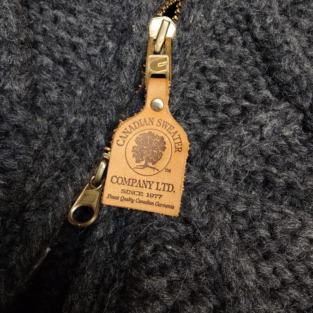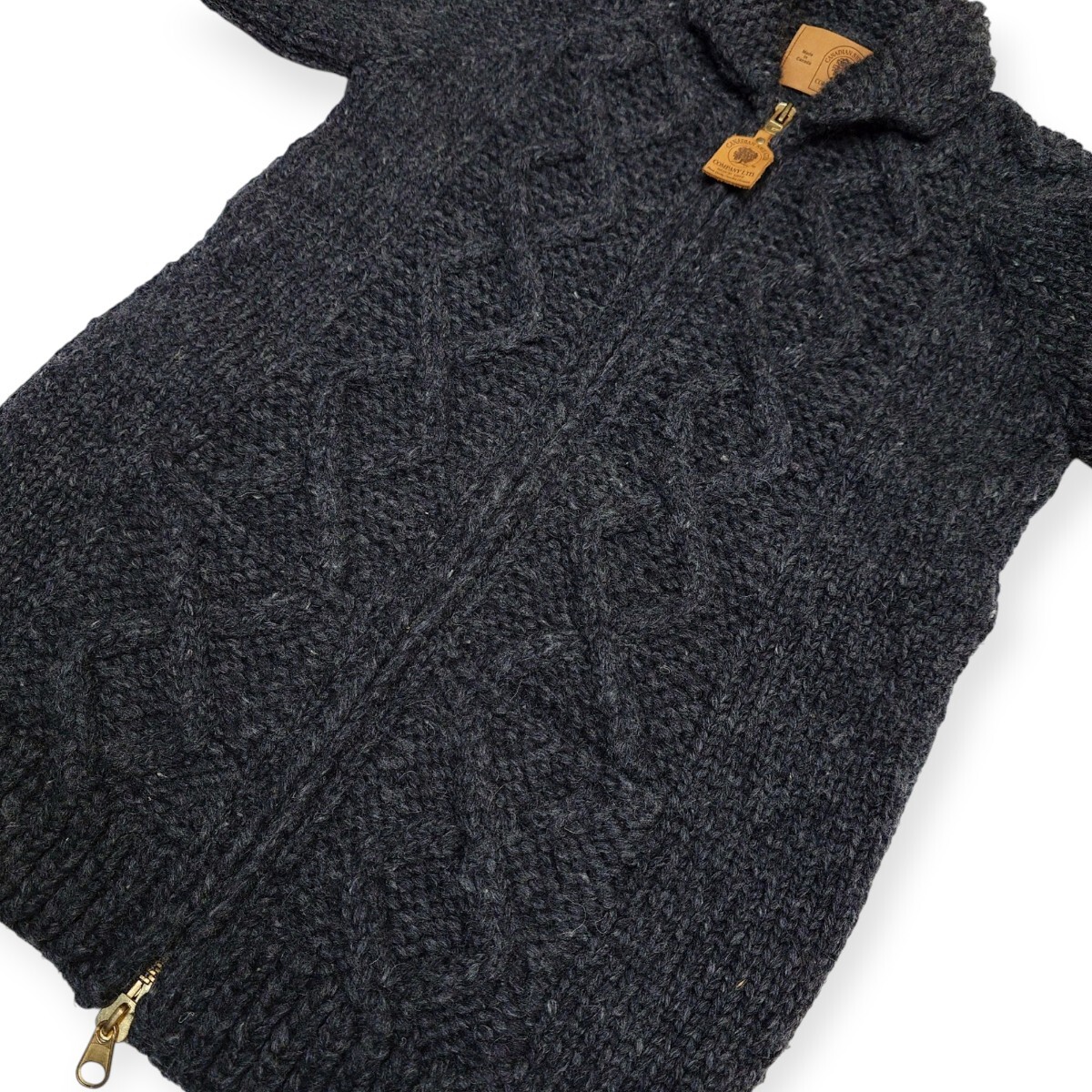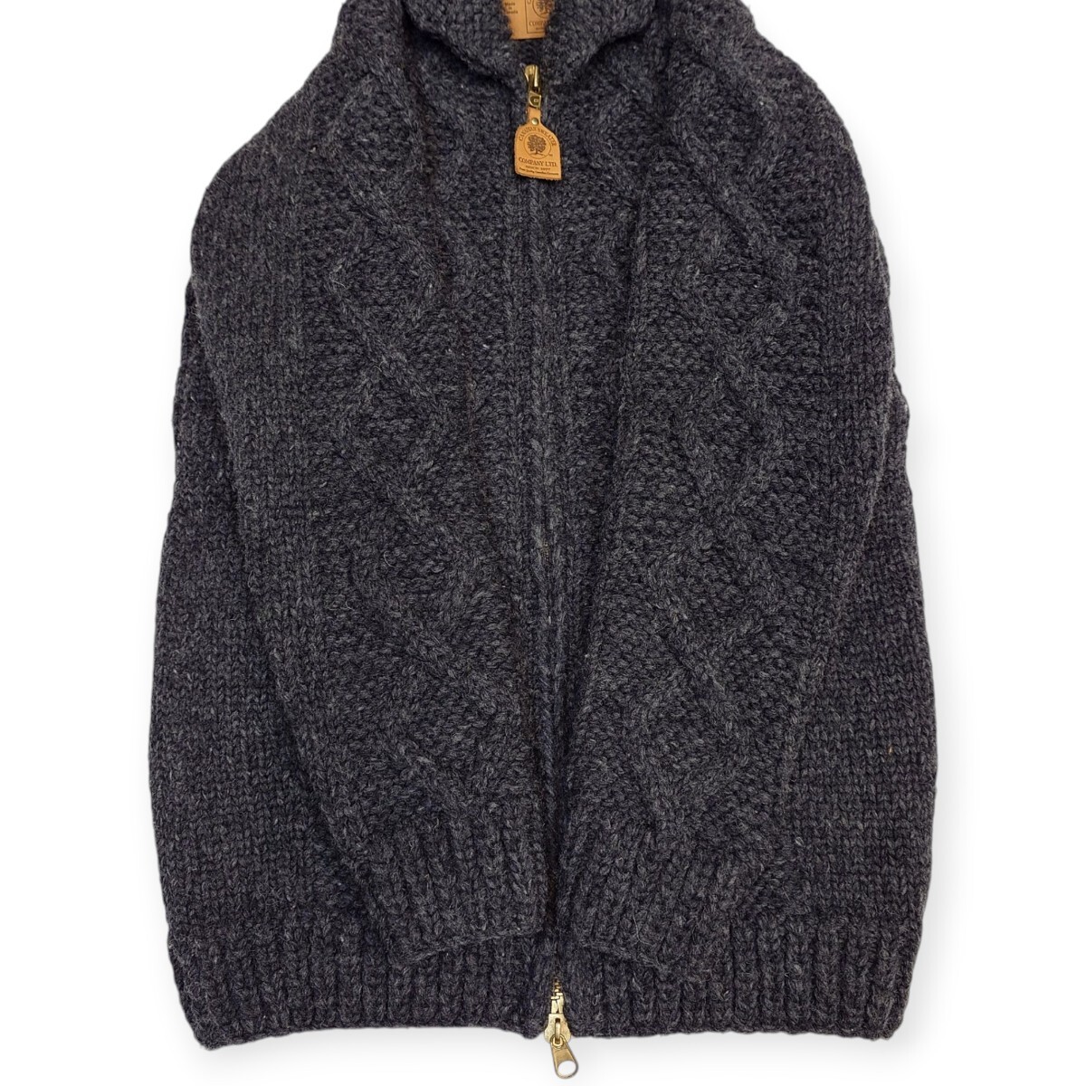 ・手編みで作られたカナディアンセーターのジップアップカーディガンになります。