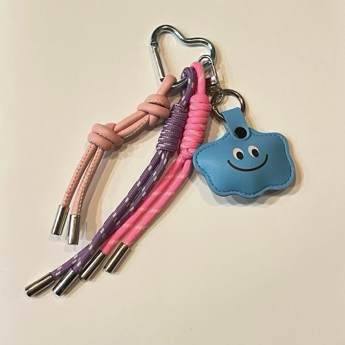 淡いトーンのコードに、にっこりかわいいスマイルチャーム