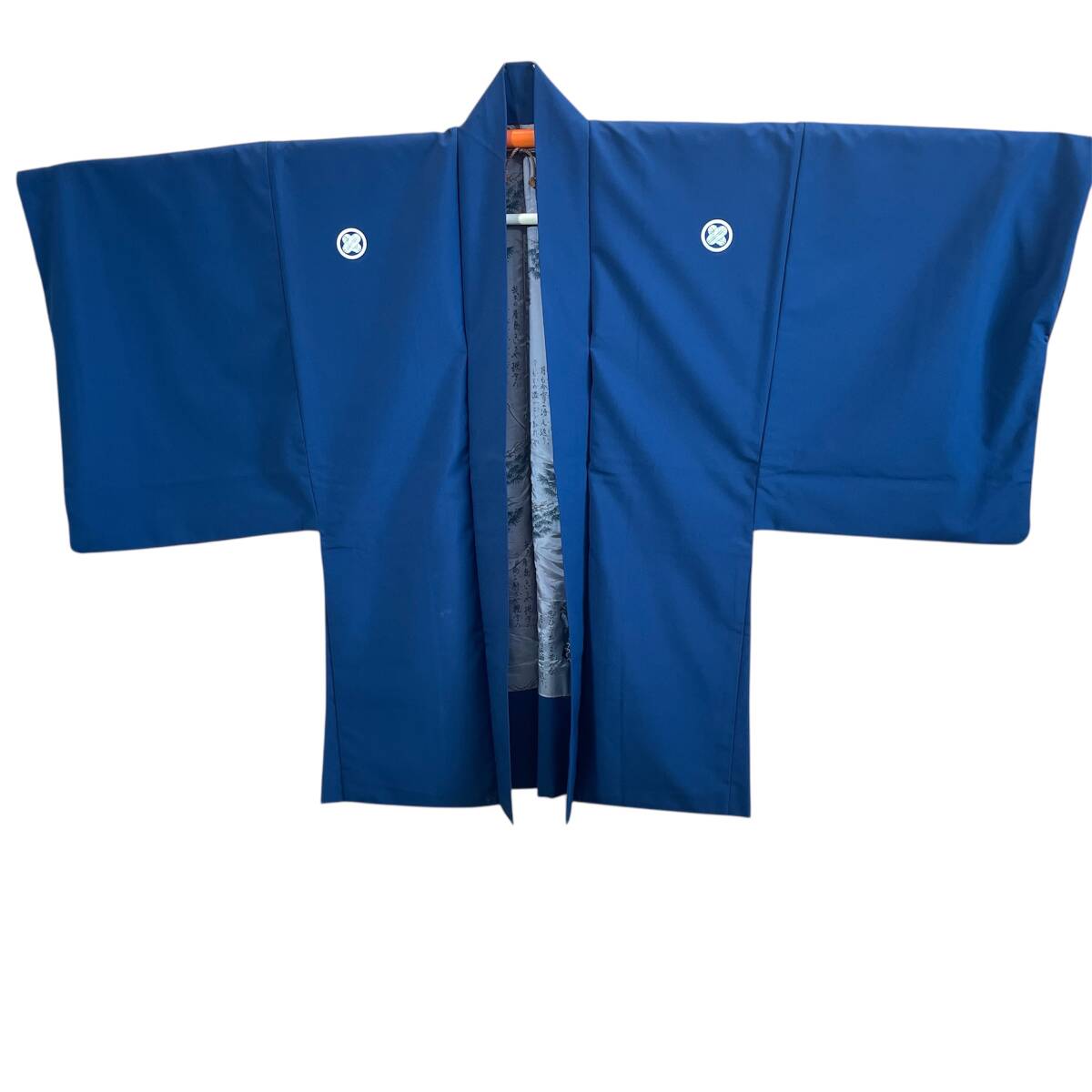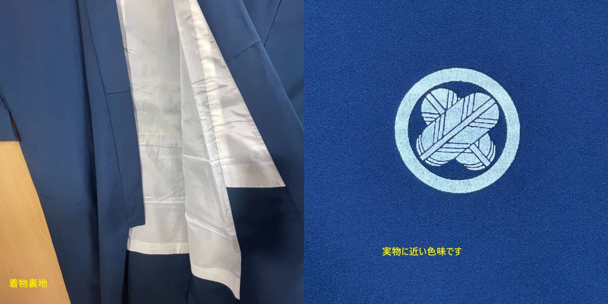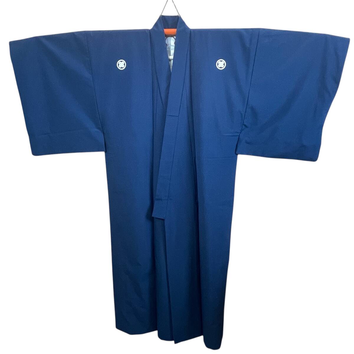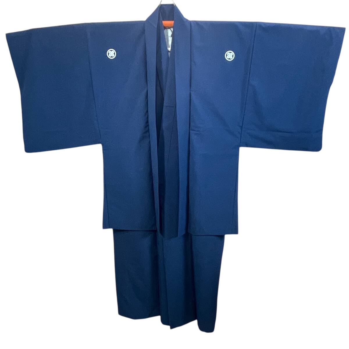 | 4958【貸衣装処分品】 男性 紺 紋付 羽織/着物 セット 大きいサイズ メンズ 成人式 和装 コスプレ リメイク 結婚式 | ||