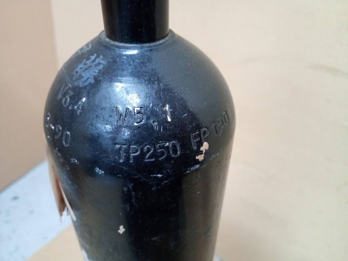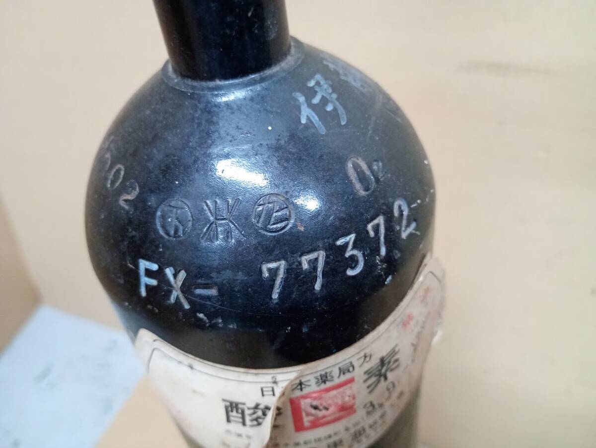 ・空ボンベです。日本薬局方のラベルが付いていますので医療用かと思います。発送時荷姿はエアークッションで包むだけの簡易梱包となりますのでご了承ください。