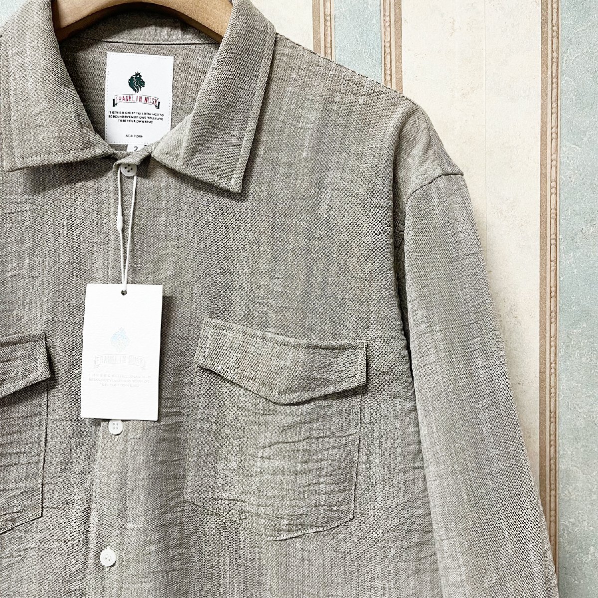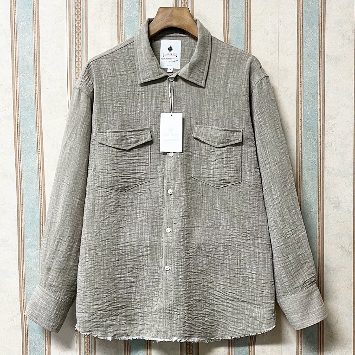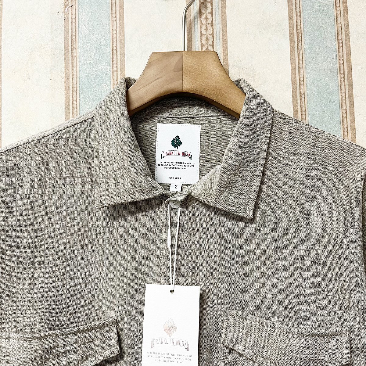 定番 定価4万 FRANKLIN MUSK・アメリカ・ニューヨーク発 長袖シャツ リネン混 無地 フリンジ 前開き 開襟シャツ カジュアル 秋 サイズ4