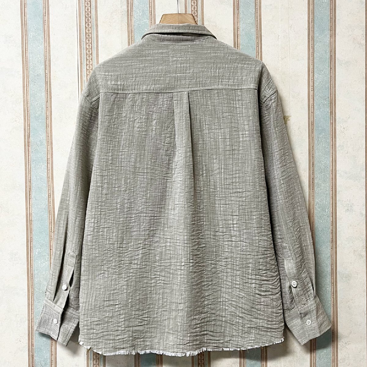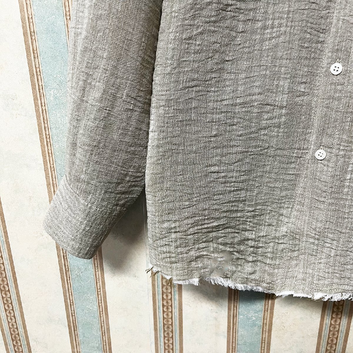 定番 定価4万 FRANKLIN MUSK・アメリカ・ニューヨーク発 長袖シャツ リネン混 薄手 無地 フリンジ 前開き 開襟シャツ カジュアル 日常着 通勤 秋 サイズ4