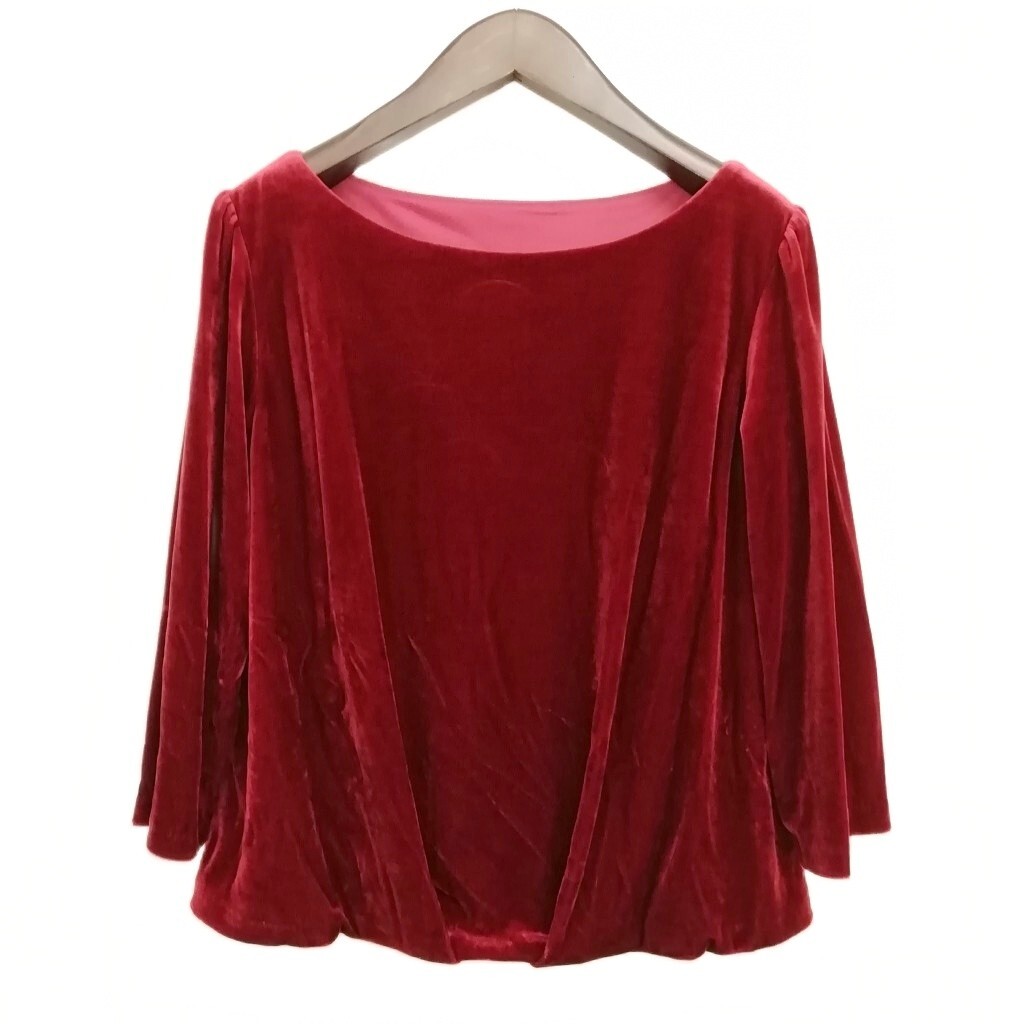 ナチュラルビューティー NATURAL BEAUTY Purpose 341-6260124 ベロア プルオーバー ブラウス 美品 15 ボルドー 大きいサイズ レディース
