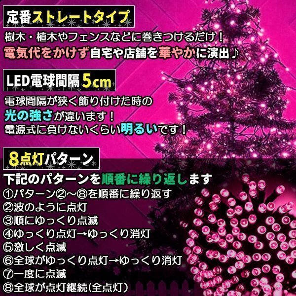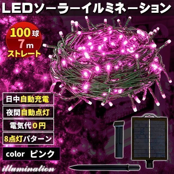 ソーラー イルミネーション 屋外 クリスマス ストレート 屋外用 イルミネーションライト 100球 ピンク