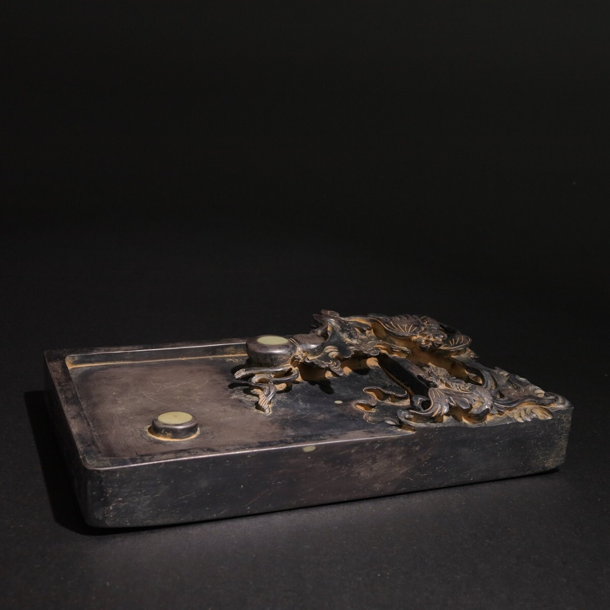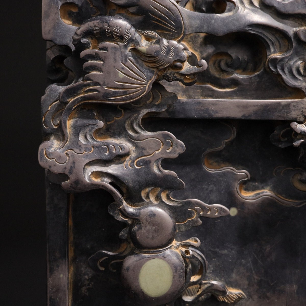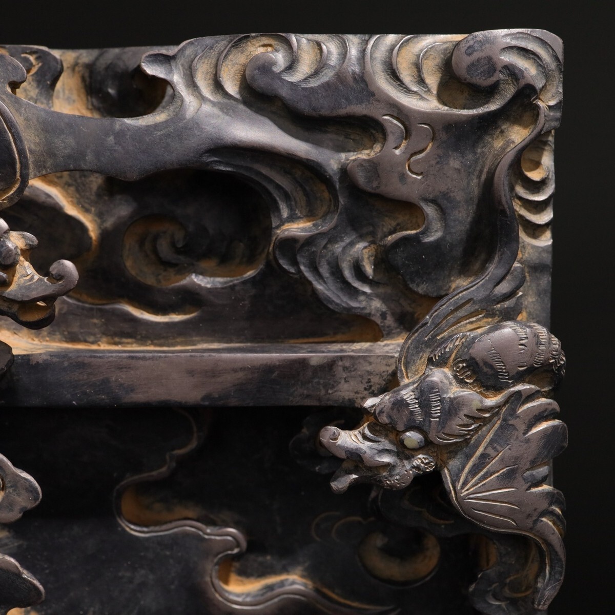 「古端石硯 蝙蝠納福 葫蘆蘊祿 福祿文房端渓硯 曾燠銘 清時代」手彫り 文房四宝 書道具 中国古美術 旧蔵出