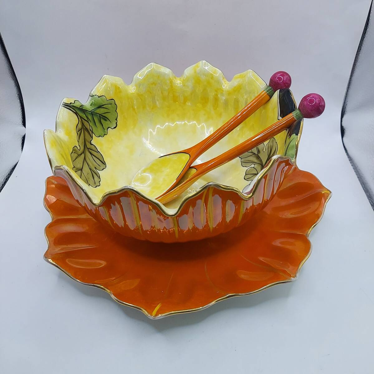 | 【希少】オールドノリタケ アールデコ /ボウル/皿/スプーン/サラダサーバースプーン 4点セット アンティーク (10776) | ||