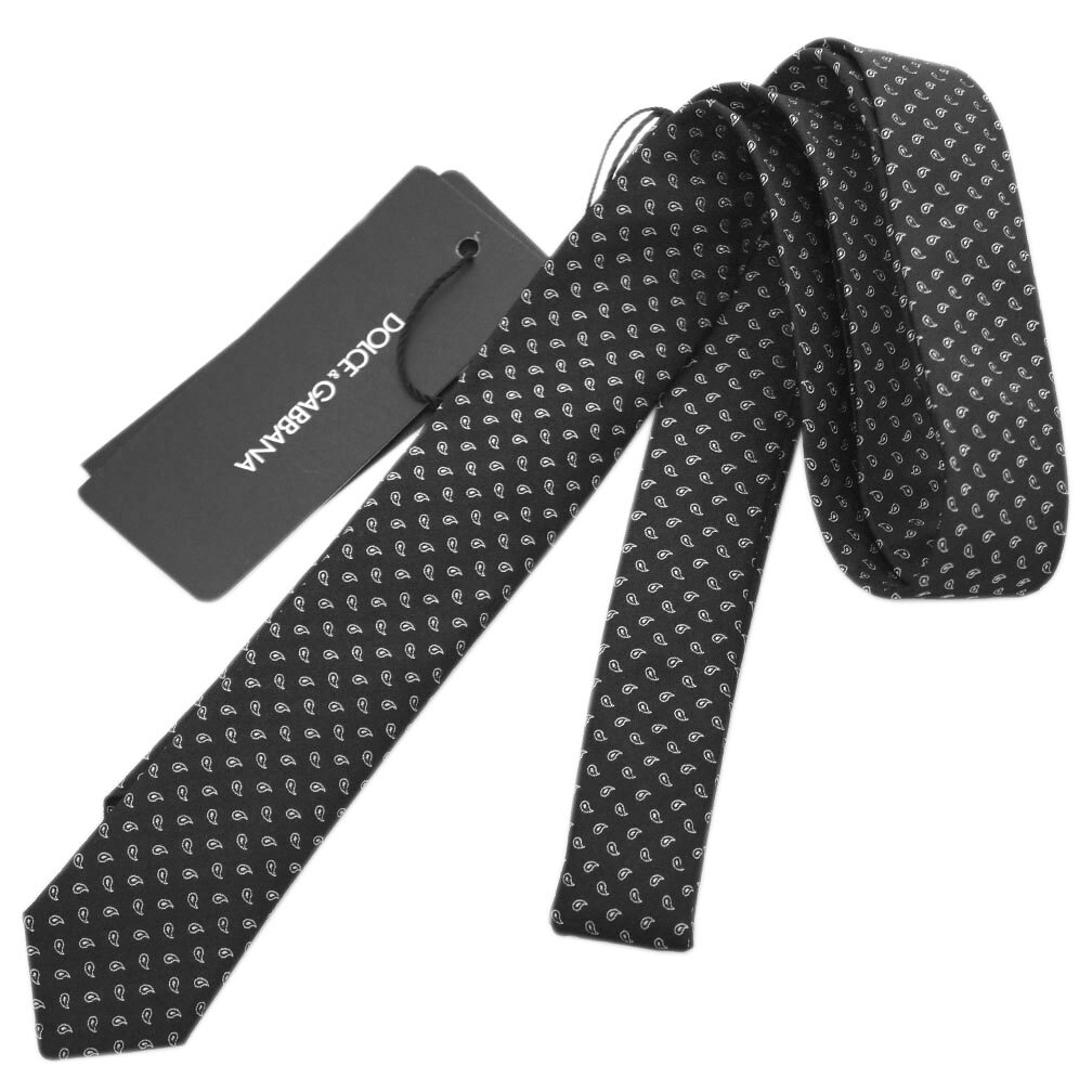 ドルチェ&ガッバーナ ブランド ネクタイ GT142E DOLCE&GABBANA ドルガバ ナロータイ ジャガード ペイズリー ブラック 黒 02115