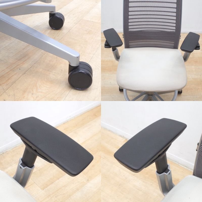 | 機 能 | ハイチェアタイプ、足掛け付き、座面昇降・奥行調整、アジャスタブルアーム、可動式ランバーサポート、自動体重感知機構、シンクルチルトリクライニング |