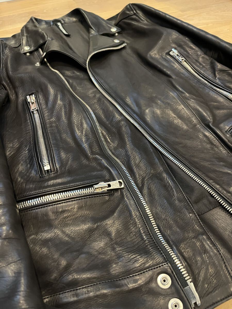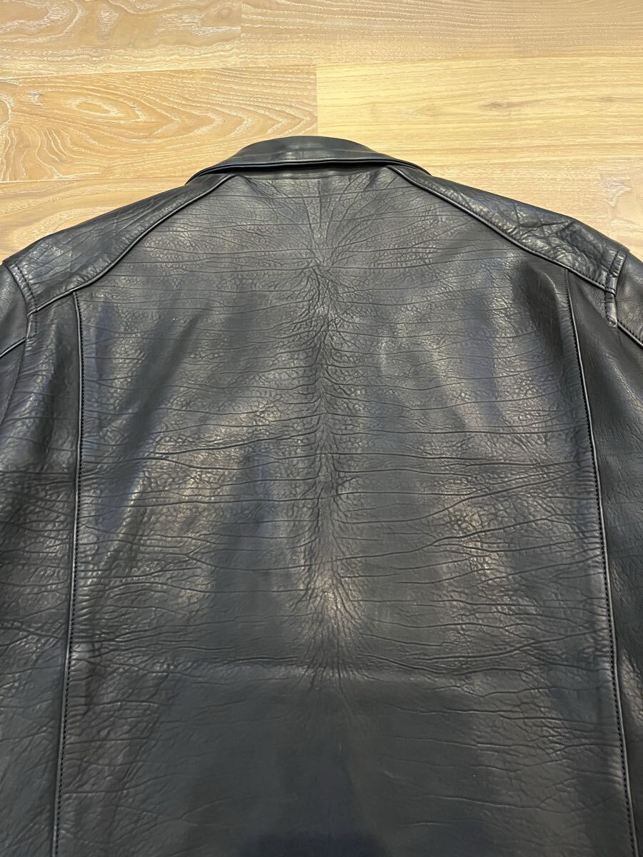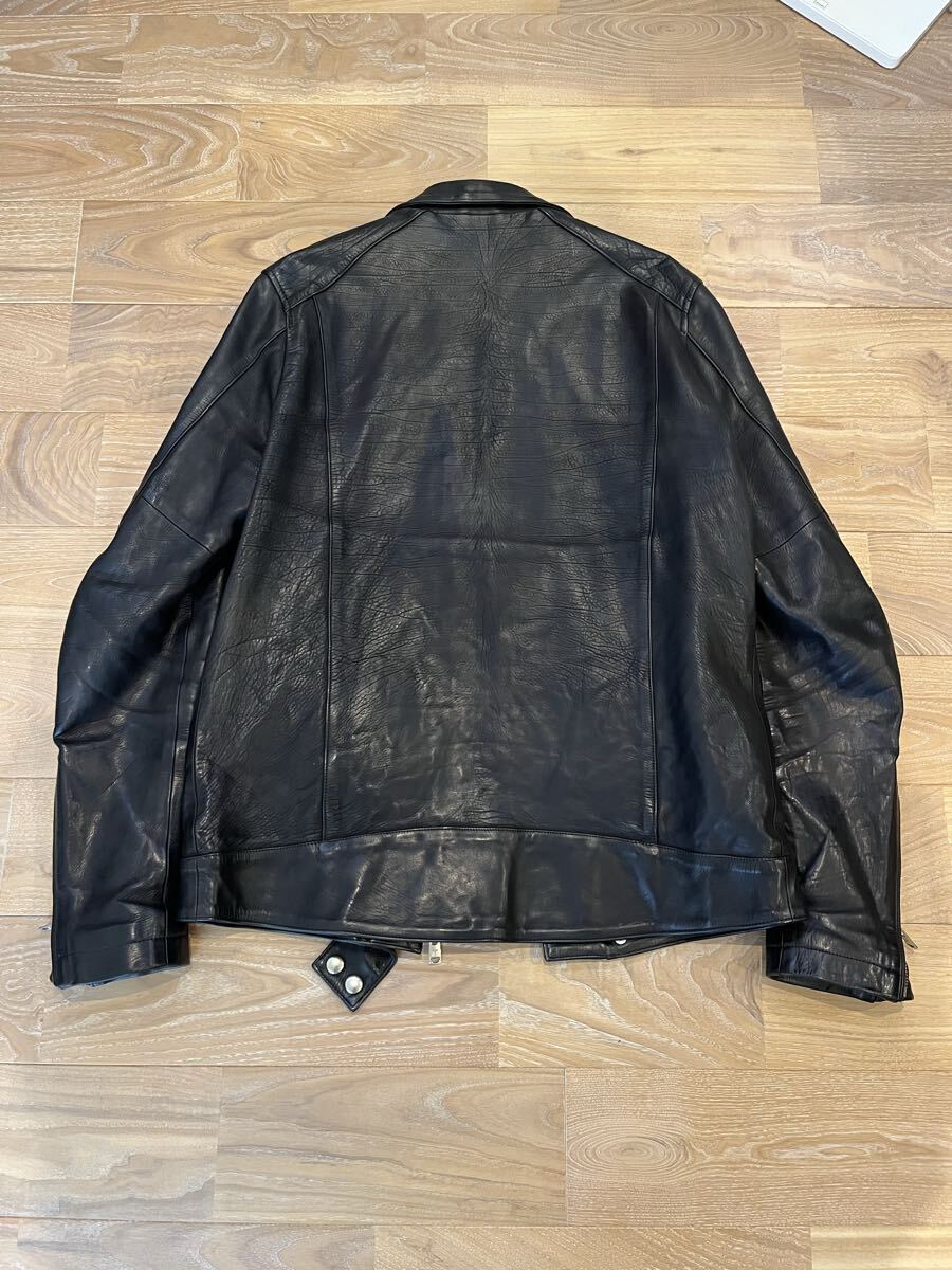 写真ではわかりにくいですが、非常に上質なレザーになっています。タイトな作りなので、細身の方におすすめです!