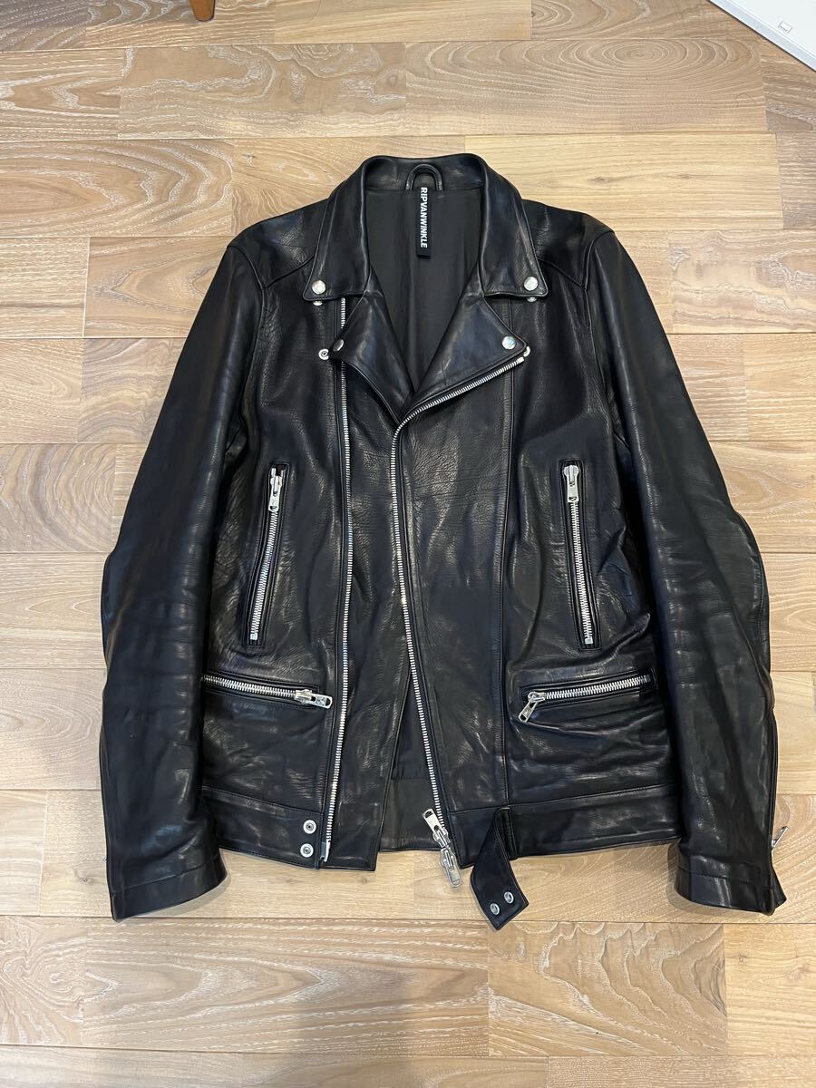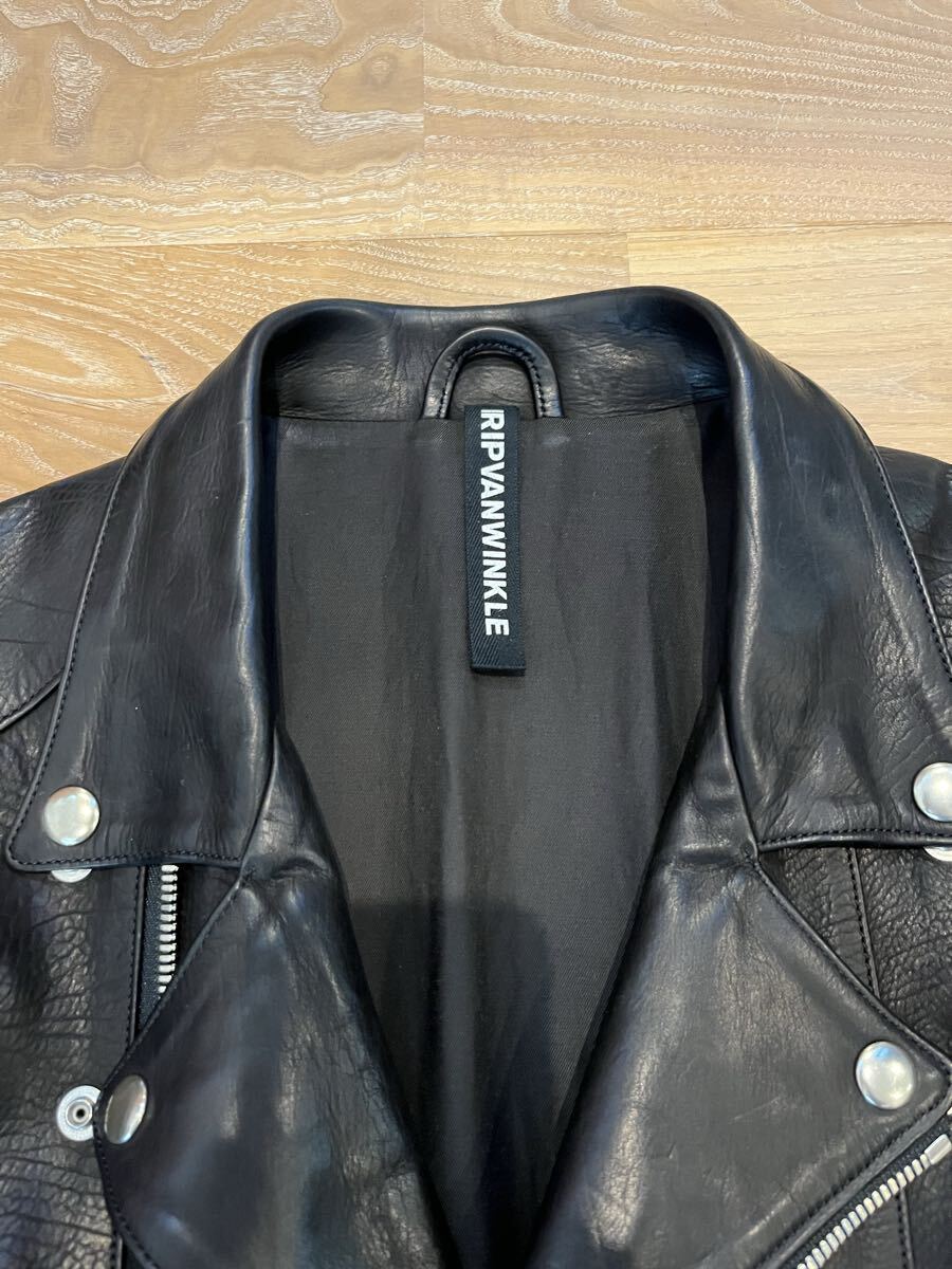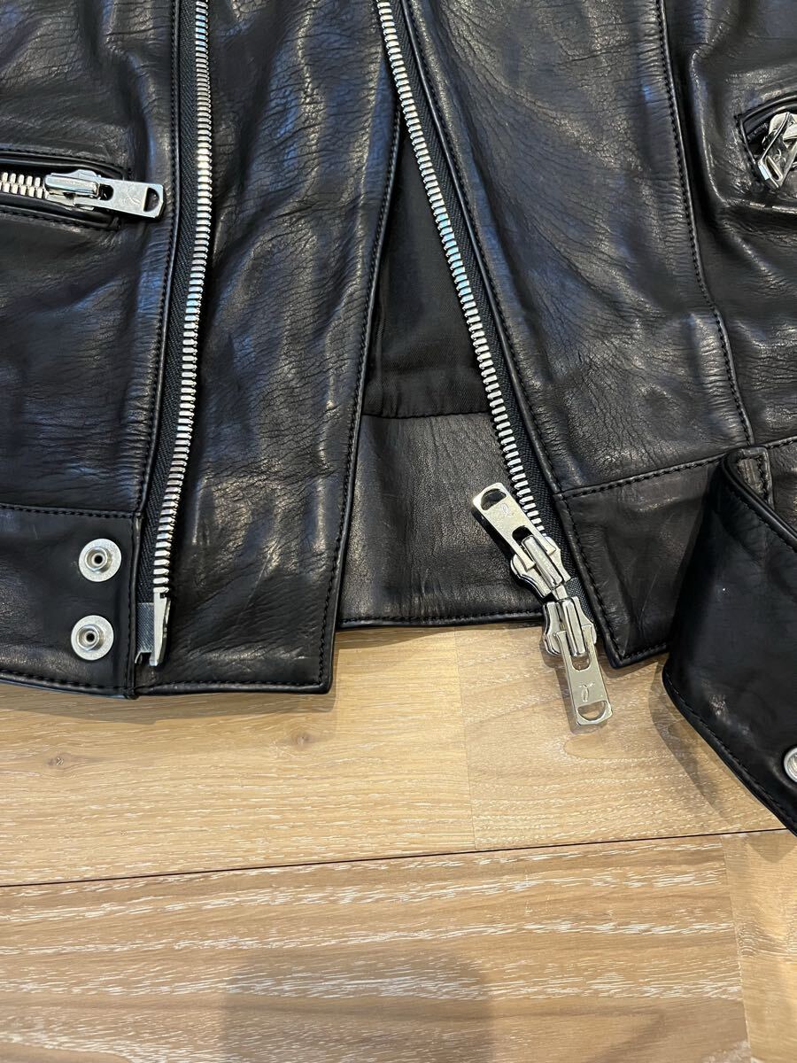 写真ではわかりにくいですが、非常に上質なレザーになっています。タイトな作りなので、細身の方におすすめです!
