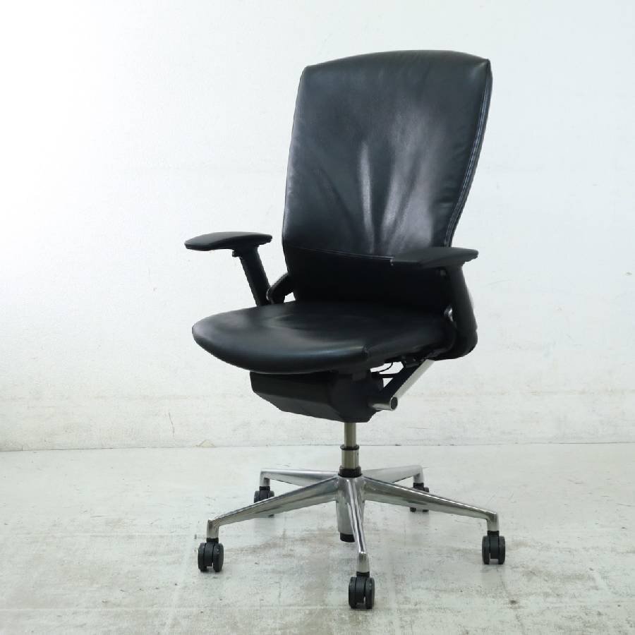 内田洋行 Pulse パルス デスクチェア PA-900L 本革張り背樹脂カバー ブラック 可動肘付き★286h14