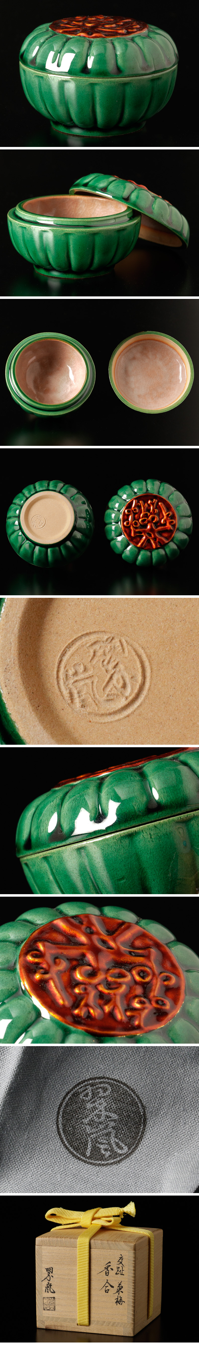 | 【古美味】二代中村翠嵐 交趾菊梅 香合 茶道具 保証品 |