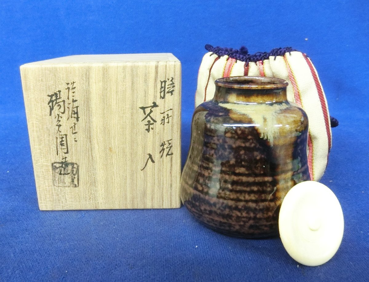 ●★17―015★茶器 酉々窯 茶碗/膳所焼 陽炎園 岩崎新定造 茶入/志野焼 養心窯 樋口統三 3点まとめ/茶道具 骨董 古美術 落款 共箱[100]