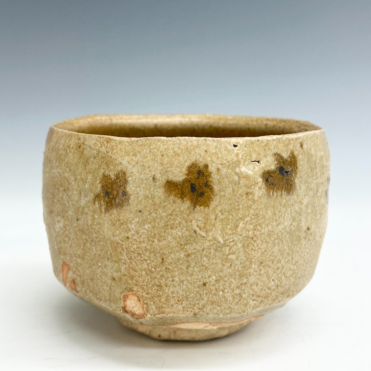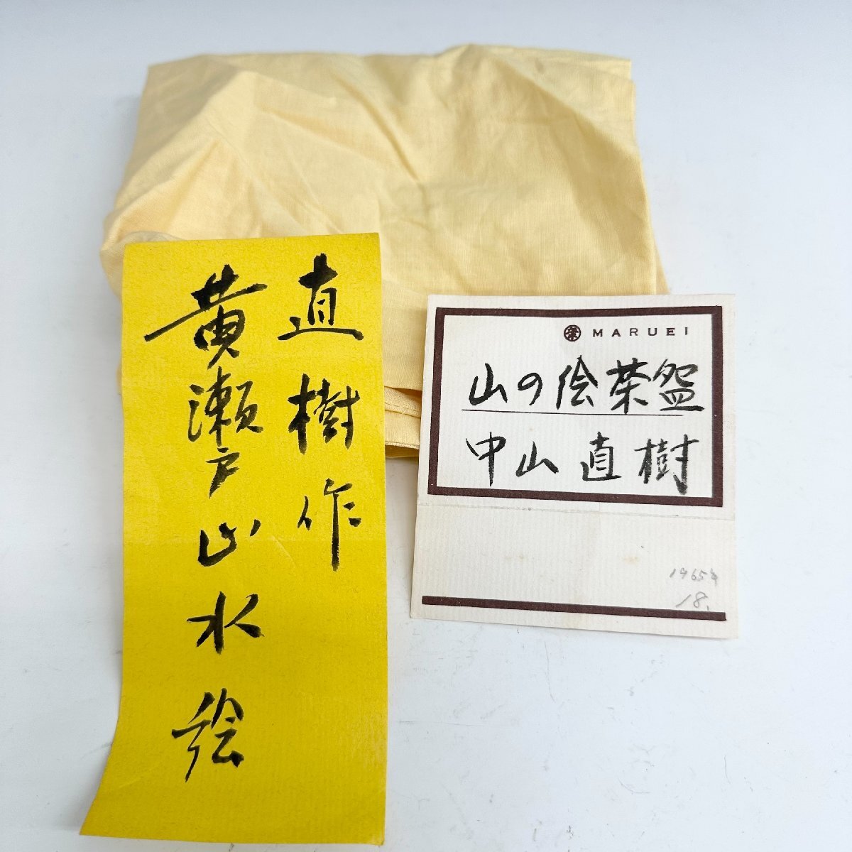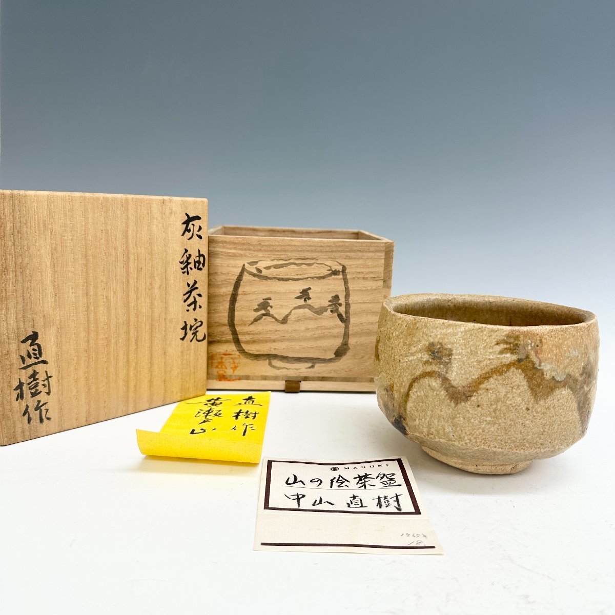 N 百貨店個展 出展作 中山直樹 灰釉茶碗 黄瀬戸山水絵 共箱 美濃焼 師 人間国宝 荒川豊蔵 本物保証