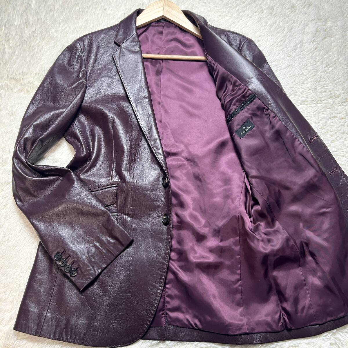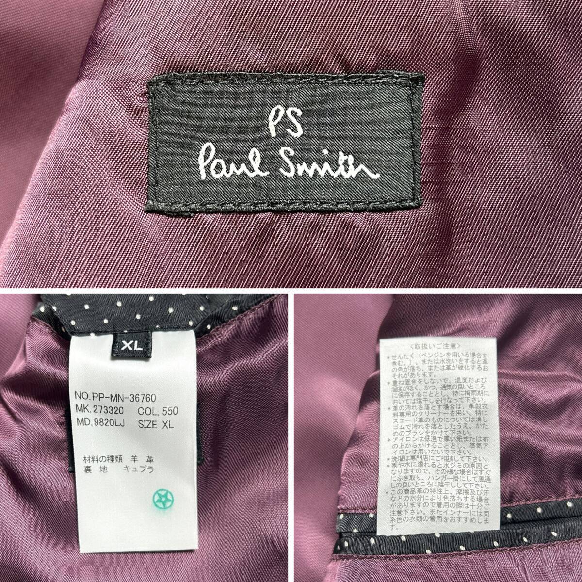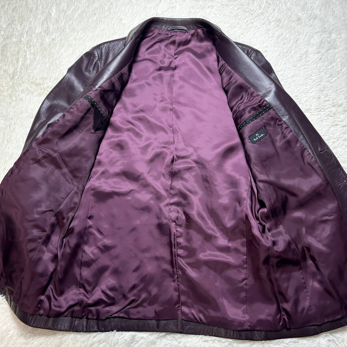 極美品/ラムレザー/XL◎PS Paul Smith ポールスミス テーラードジャケット 羊革 シープスキン XL相当 ワインレッド 赤 アウター カジュアル