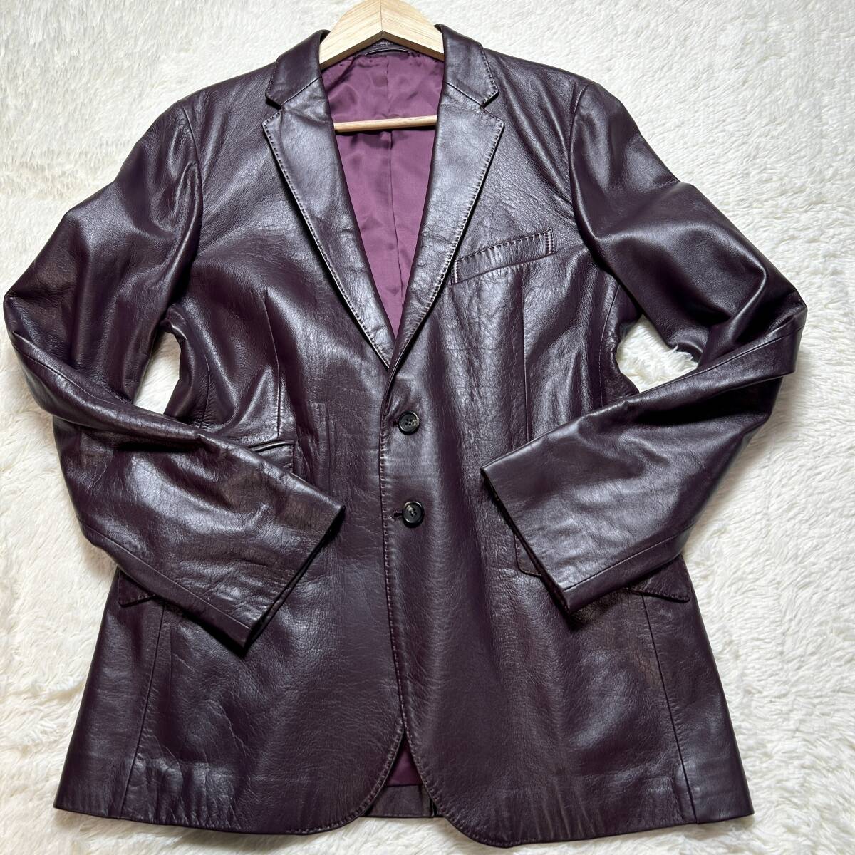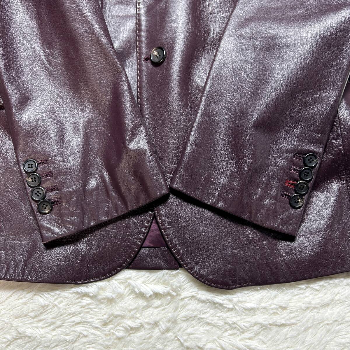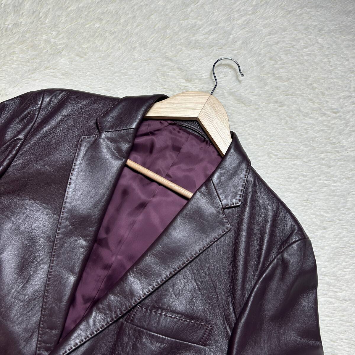 極美品/ラムレザー/XL◎PS Paul Smith ポールスミス テーラードジャケット 羊革 シープスキン XL相当 ワインレッド 赤 アウター カジュアル