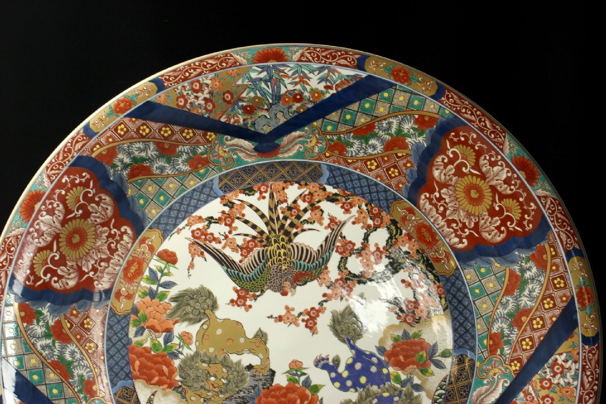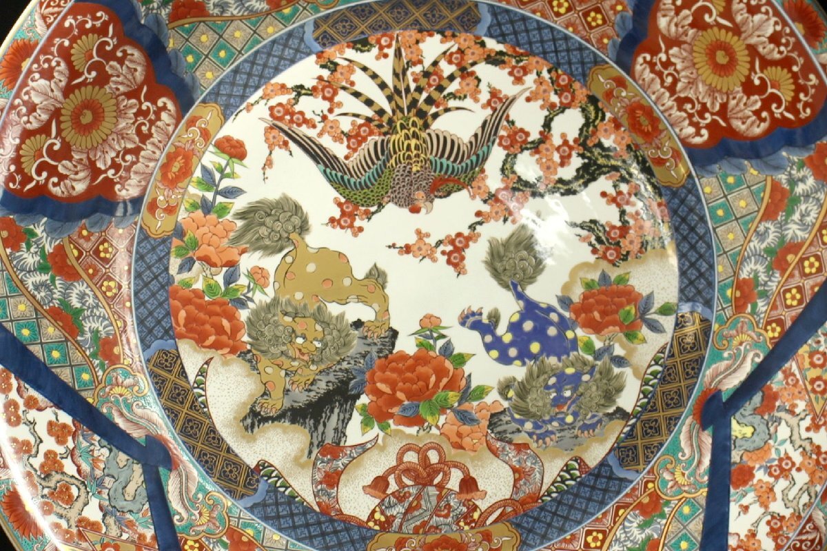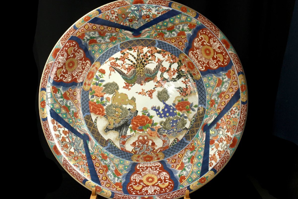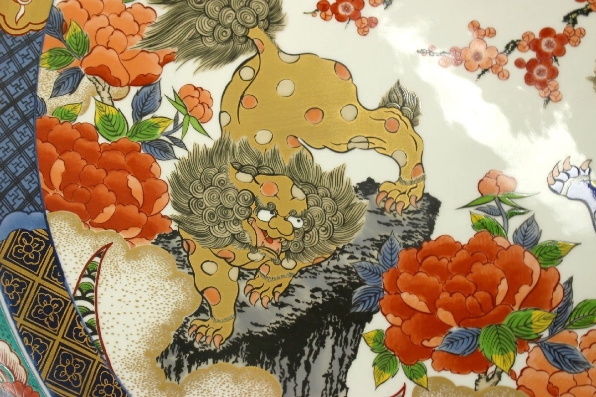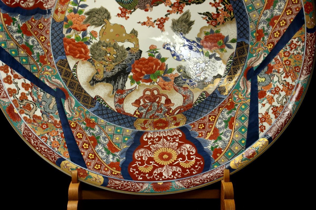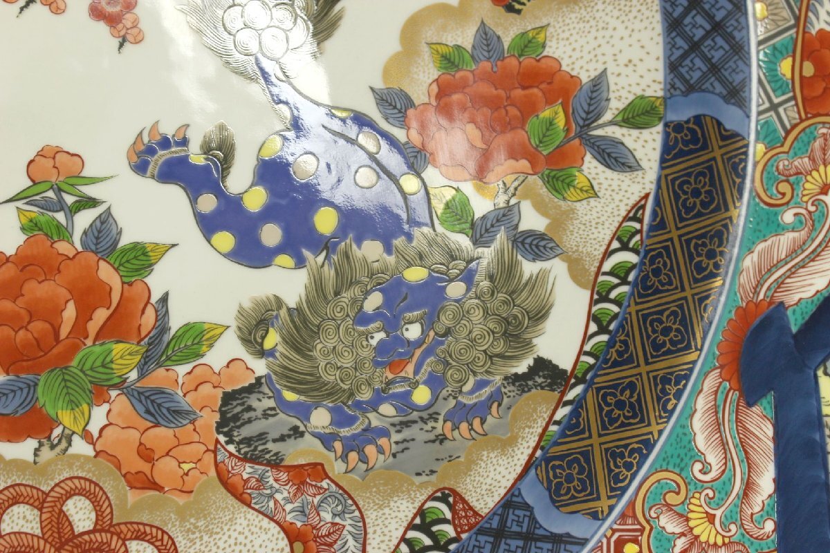 【董芸】高級美術品 有田焼 神右衛門 最上位作 三尺 染錦 唐獅子牡丹図 大皿 飾皿 真作保証