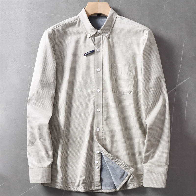 A128-4XLカーキ 綿100% 長袖シャツ 裏起毛 メンズ 柔らかい 暖かい 防寒 通勤 厚手 秋冬 新品 カジュアル 千鳥格子 ボタンダウンシャツ