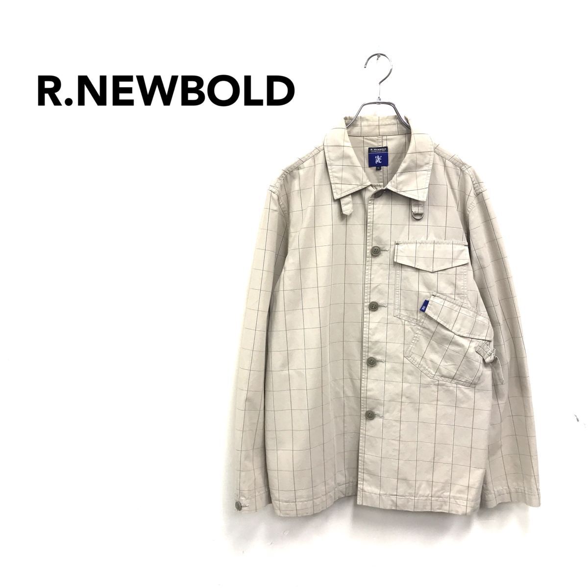 2N1043-G-N◆ R.NEWBOLD アールニューボールド ポールスミス シャツジャケット ダブルフラップポケット フラグチェック ◆ sizeL ベージュ