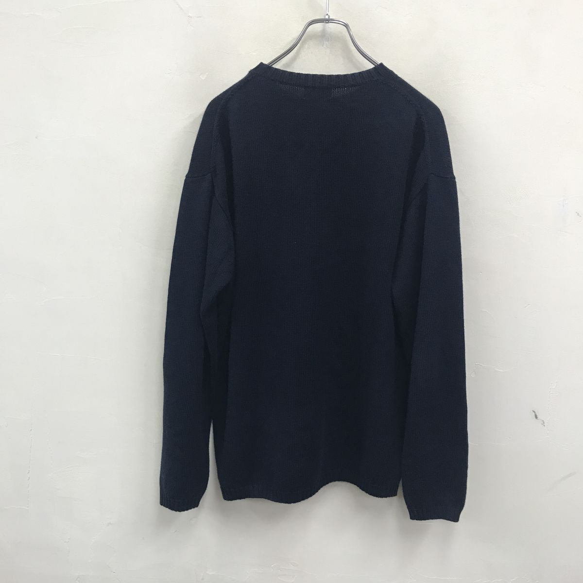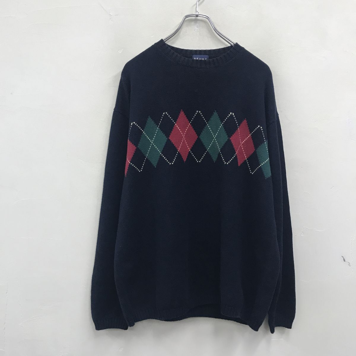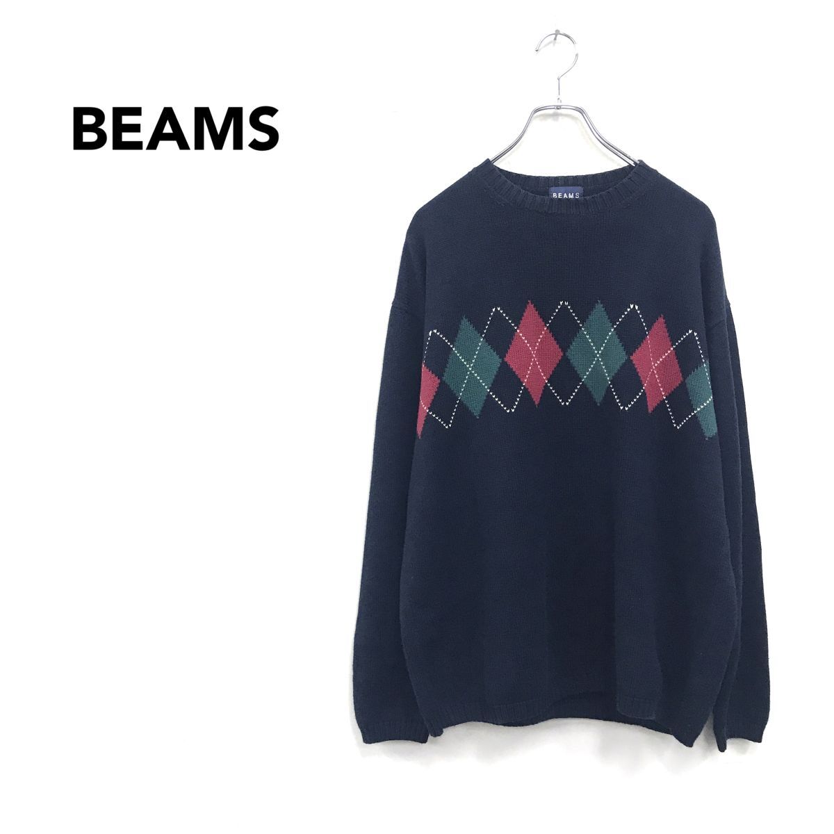 2O3282-G◆ BEAMS ビームス アーガイルコットンニットプルオーバー セーター リブクルーネック ビッグ ユニセックス ◆ sizeL ネイビー 綿
