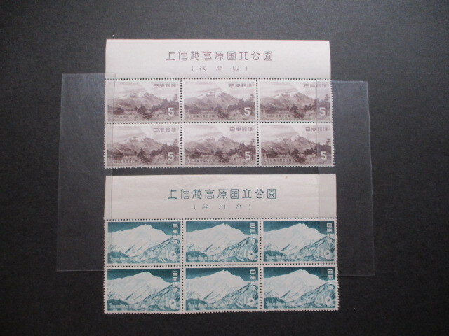国立公園   1次・上信越高原・(2種)     題字付き各6枚ブロック*12枚      美品