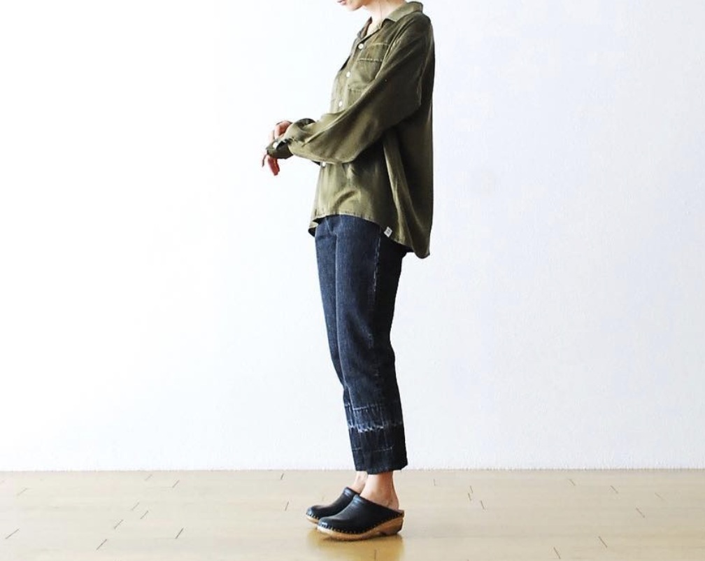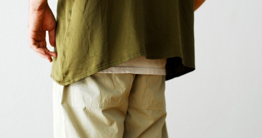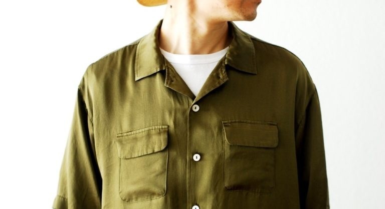【定価37,800円・使用少美品】itten. (イッテン) itten 6180 open collar L/S shirts - silk(サイズ2・オリーブ色・シルクシャツ)購入者身長170㎝