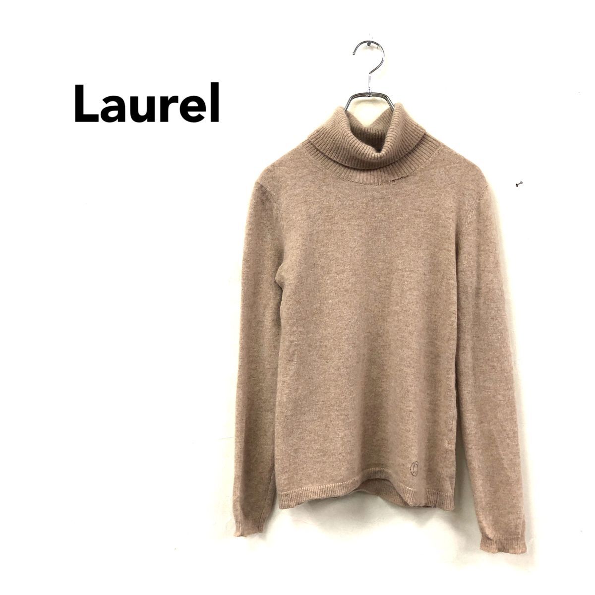 2O3174-G◆ Laurel ローレル カシミヤウールタートルネックニット ハイゲージ シャギー ロゴラインストーン リブ ◆ size38 ベージュ
