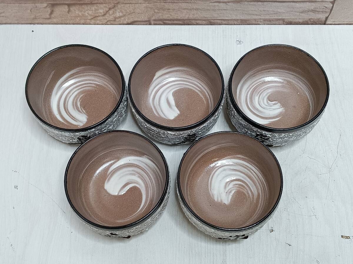 【未使用・保管品】湯呑 急須 5客セット 和食器 食器 箱付 茶器 湯のみ 陶器 検)京の陶器 萬珠堂 京都