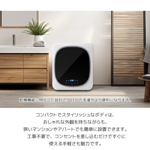 • ◆01 一人暮らしに最適の3kg容量毎日の着替えも天候に左右されず、洗濯のストレスを感じることなく快適に過ごせます。コンパクトでスタイリッシュなデザインは、おしゃれな外観を保ちつつ、一人暮らしにぴったりの機能を提供します。