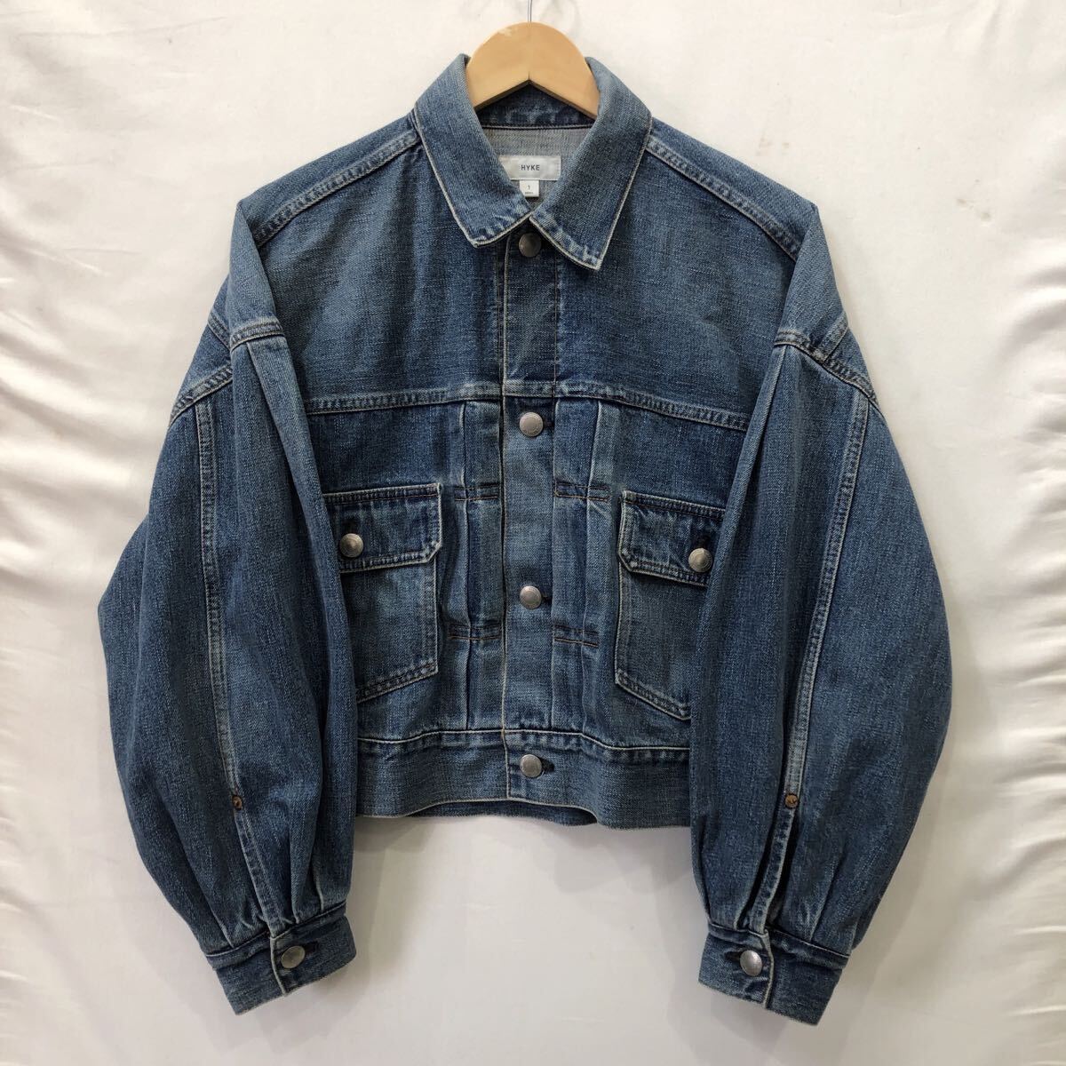 ts20251102【HYKE】ハイク BALOON SLEEVE DENIM JACKET バルーンスリーブデニムジャケット サイズ1 レディース インディゴ ショート丈 ta