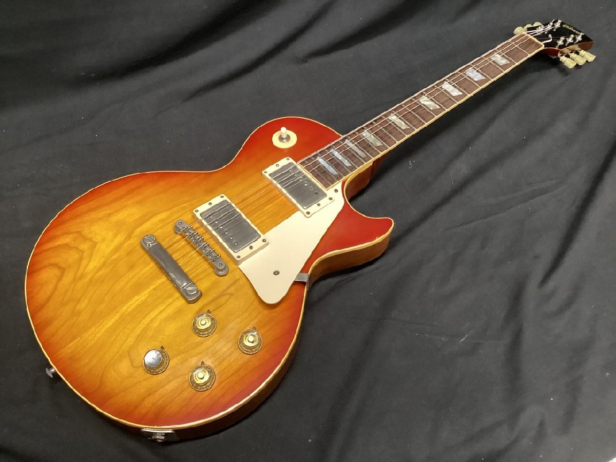 本モデルは1960年製オリジナルのレスポール・スタンダードを忠実に再現しており、スリムなネックプロファイルと美しいフィギュアド・メイプルトップが特徴です。2002年製と思われる本器は、ヴィンテージの風合いを持ちながらも、現代の演奏性と信頼性を兼ね備えています。