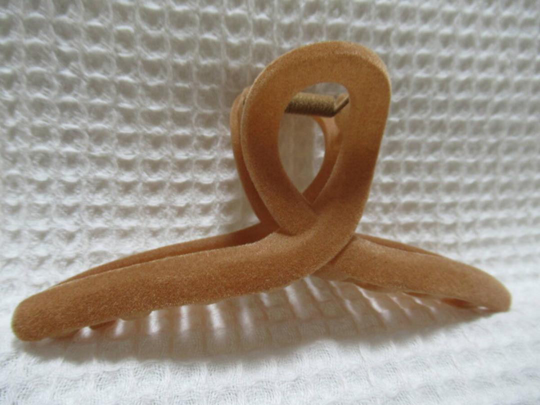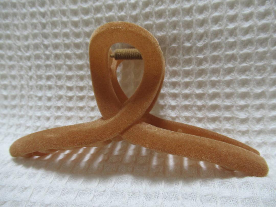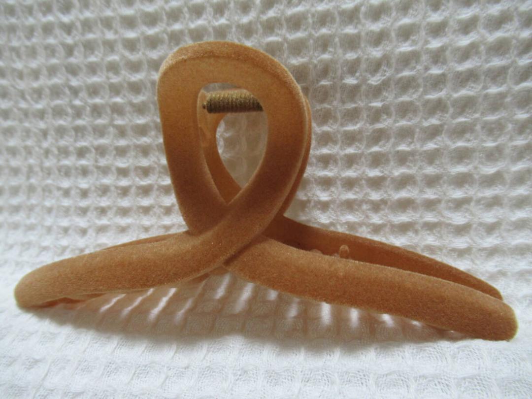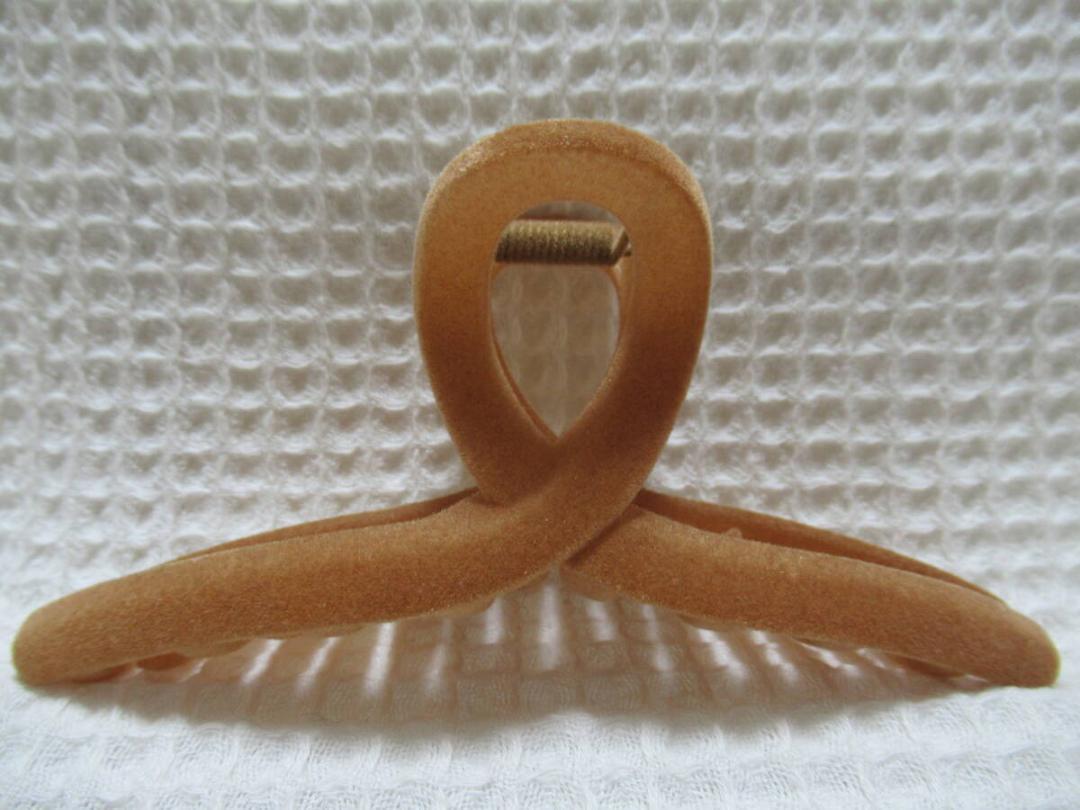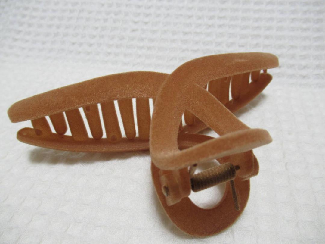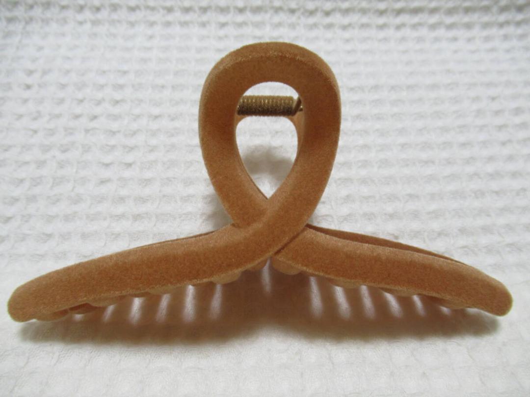 フロッキー加工のループ型バンスクリップ ライトブラウン系